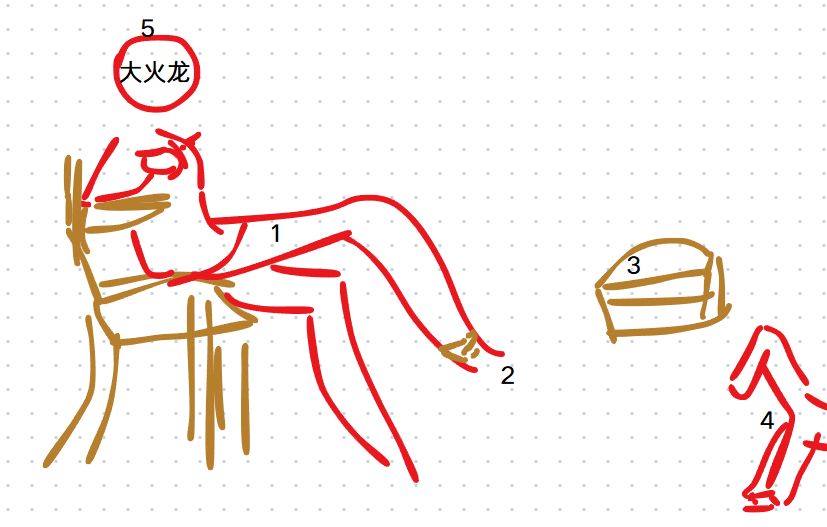 第一层立绘,1、角;2,脸;3、胸口;4、腿拖拽,5床边。