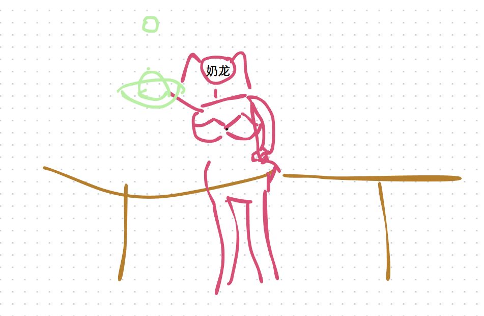 第二层立绘,触发前提:栏杆放下挡板,多出点击餐盘,奶龙会摔倒在地上。