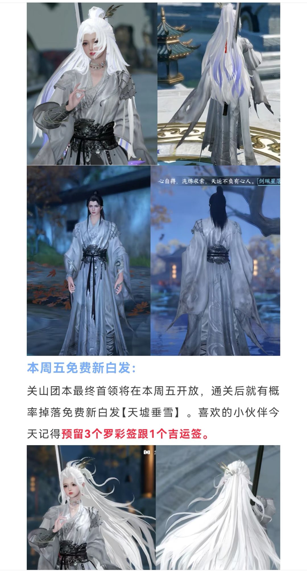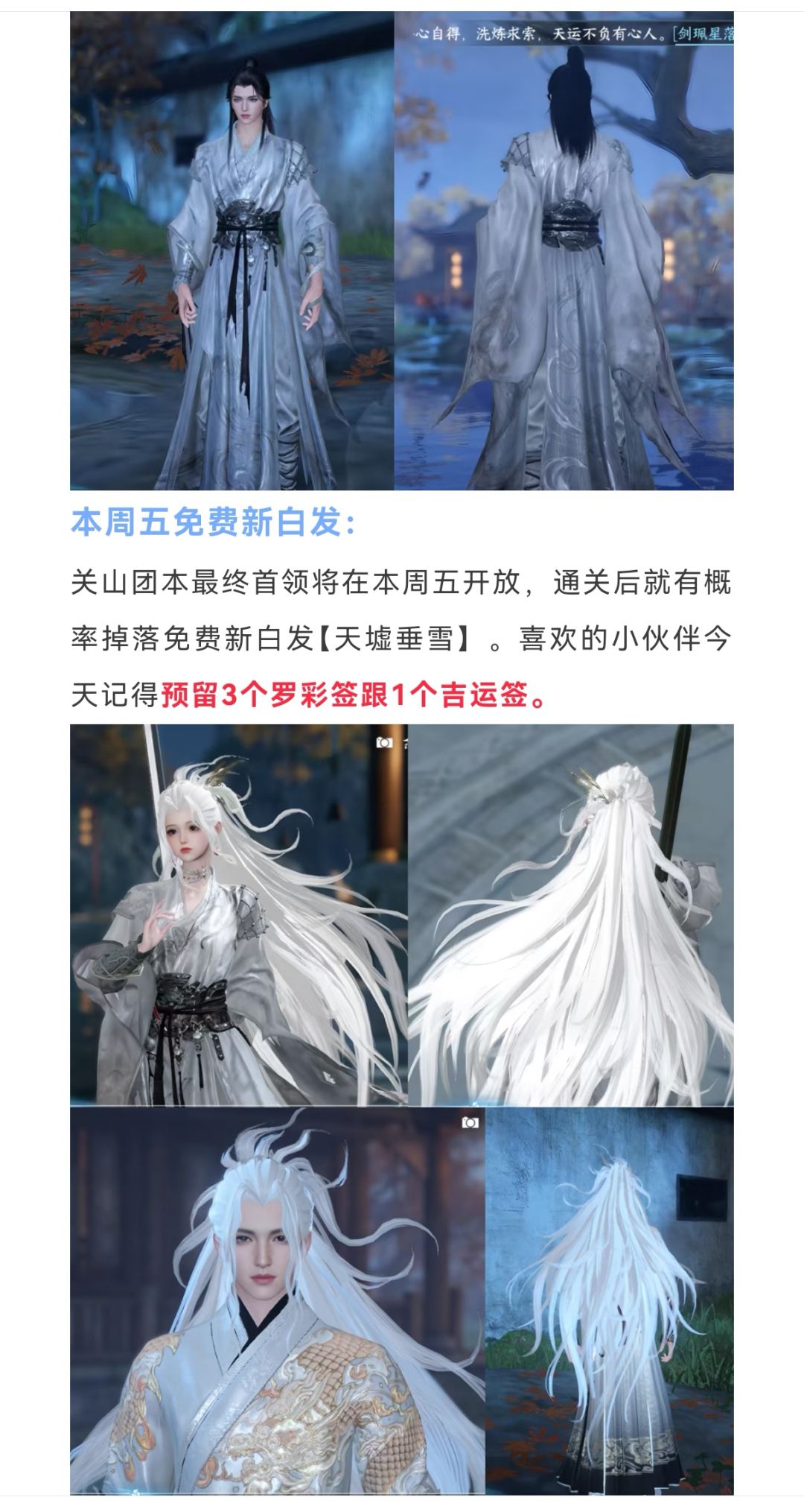逆水寒手游本周五免费新白发+新免费时装,