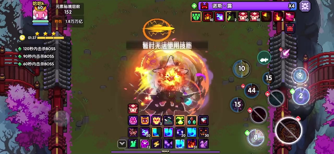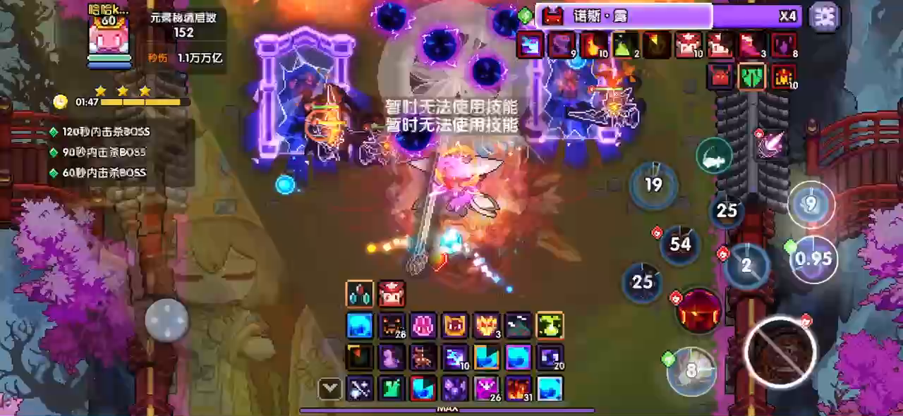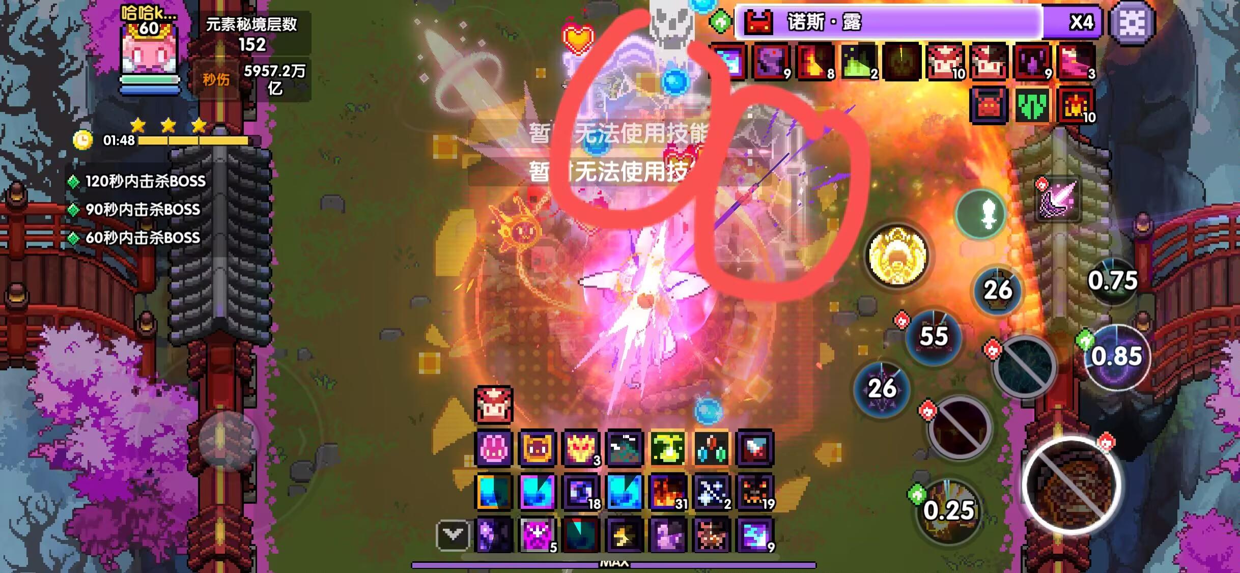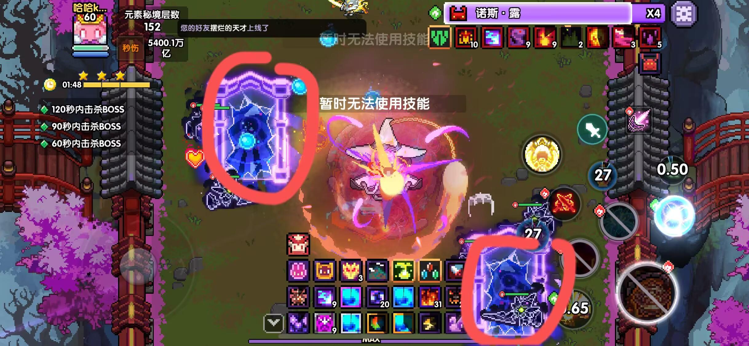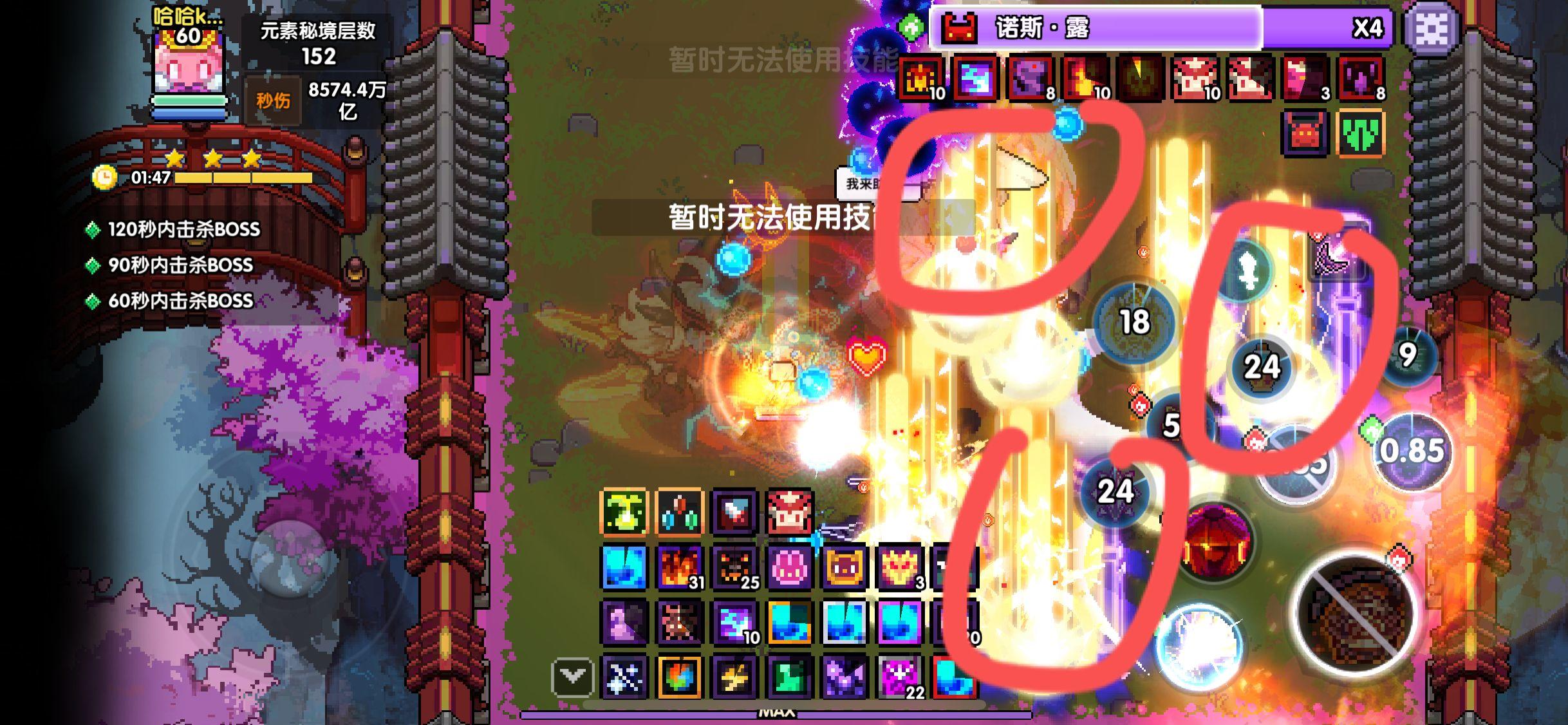 第二次可以在30秒的时候往左下角走,过几秒点脱离卡死,就可以在第二次小怪爆发卡上奥义(拉脱第二次奥义我也没试过几次,没出过成绩,不知道卡还是没卡更好,注意甄别一下)