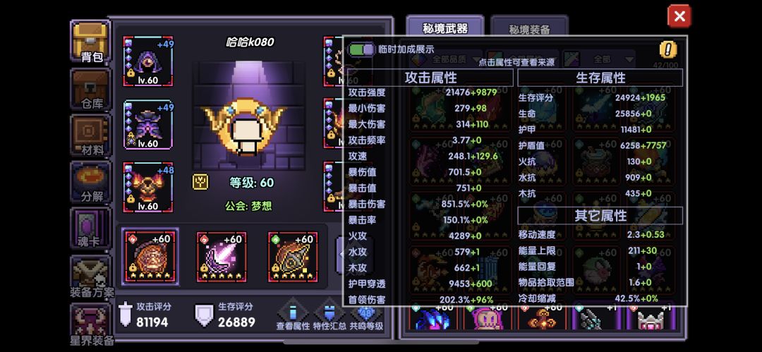 【一图流】【场景介绍】护甲穿透:10040元素穿透:5150暴击率:150能量上限:240[其他增益]粉红毛毛兔提供400元穿、600护穿直接加成到面板境界80能量上限,闪烁雷星80能量上限【暗金】...