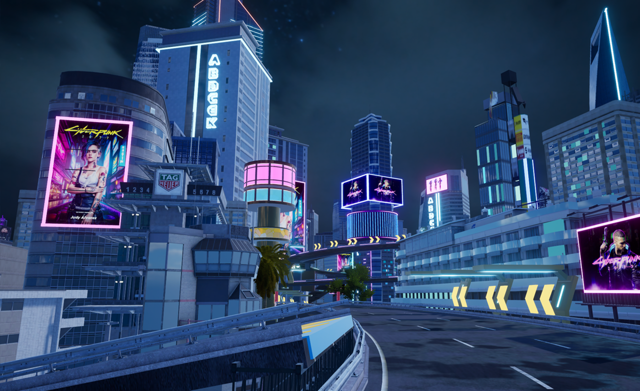 小可点评:一秒穿越赛博未来!多层高架纵横交错,摩天大楼直插云霄,整座城市被霓虹与全息广告铺满,绿色代码流如同数字雨般落下,将科技感与速度感结合得淋漓尽致!