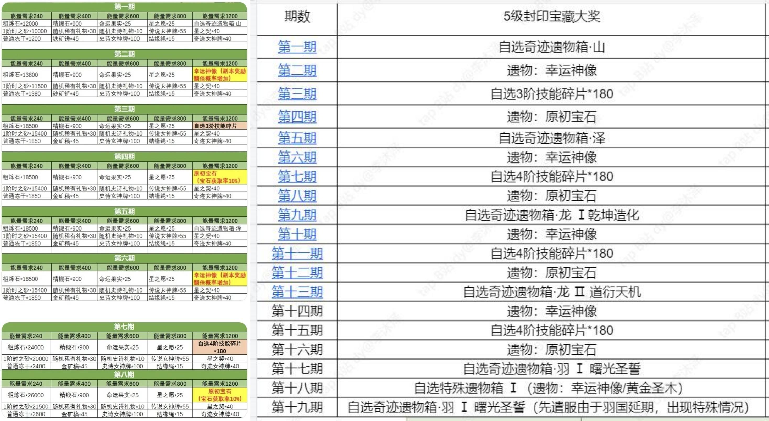 龙国有两期遗物,第二期遗物开始时,代表着龙国大约还有一半的时间。开放时间上面的表格有说明。需要注意的是第二期遗物不能用命运果实挖出来,只能硬抽。