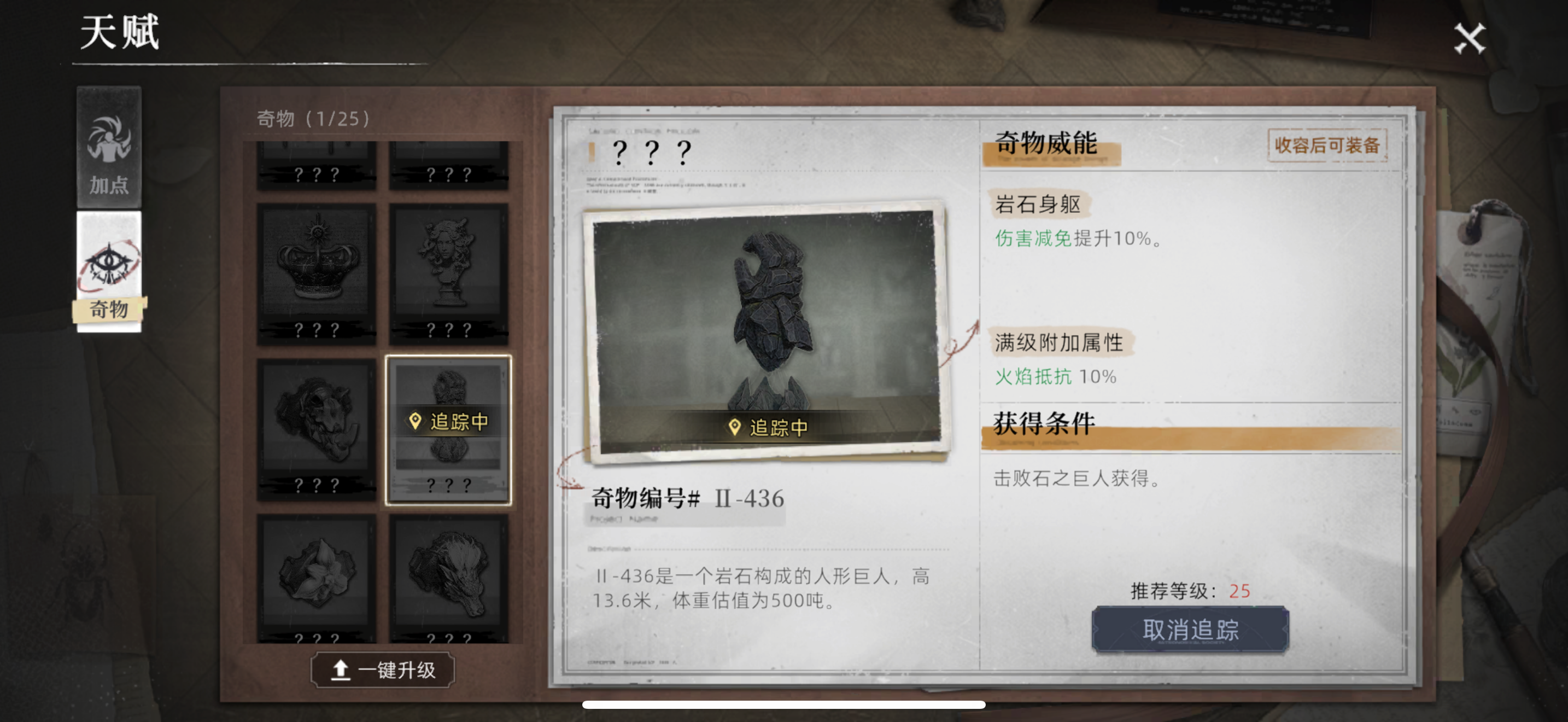 奇物有条件的情况下,及时获取,帮助挺大的。具体获取方式可以通过奇物里面,追踪地点获取。