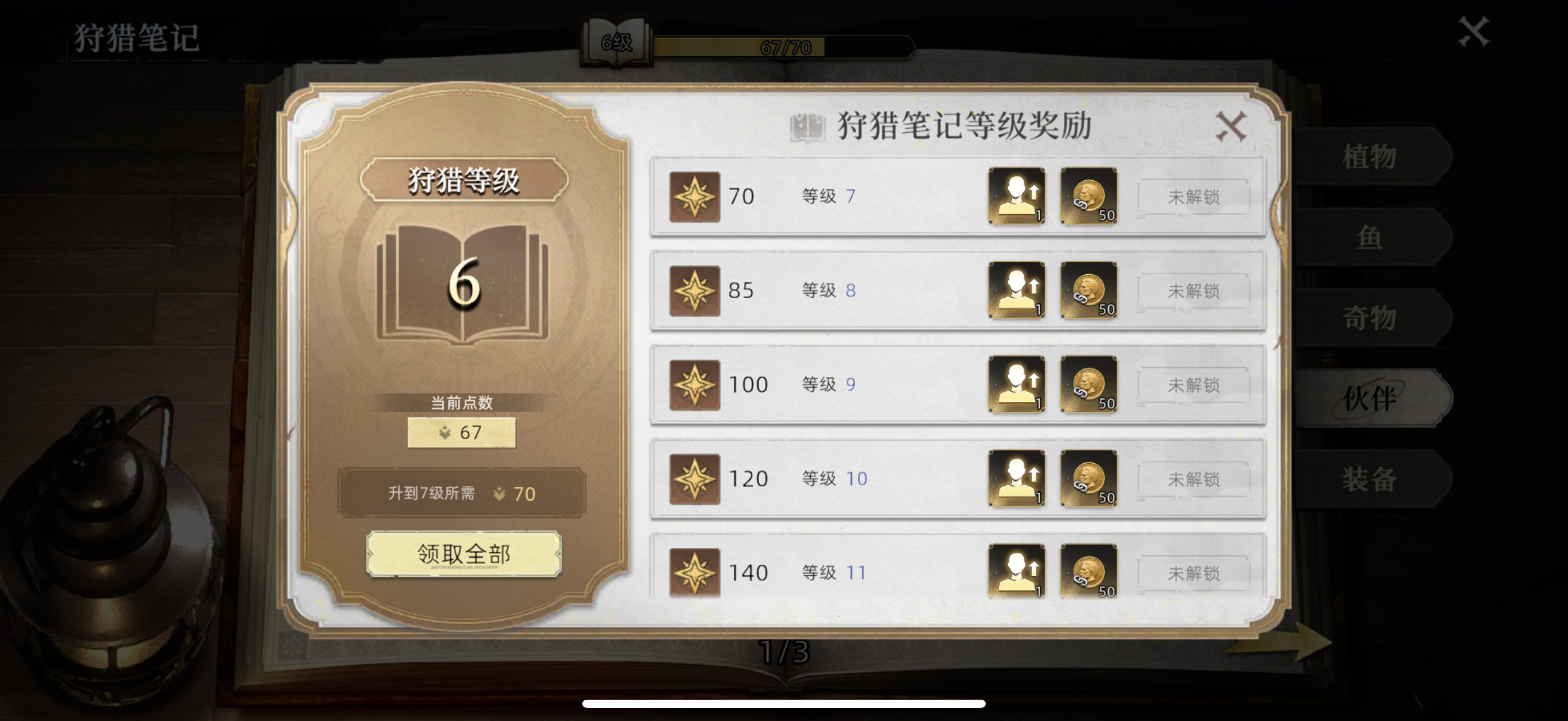 注意的点不是特别多,跟着主线走,要注意的是,一定要去收集“狩猎笔记”的东西,可以换技能点和金镑,两个都非常关键,金镑可以用来换抓捕工具,日常任务、开荒宝典、还有探索可以获取金镑,时间充裕的话多多探索。