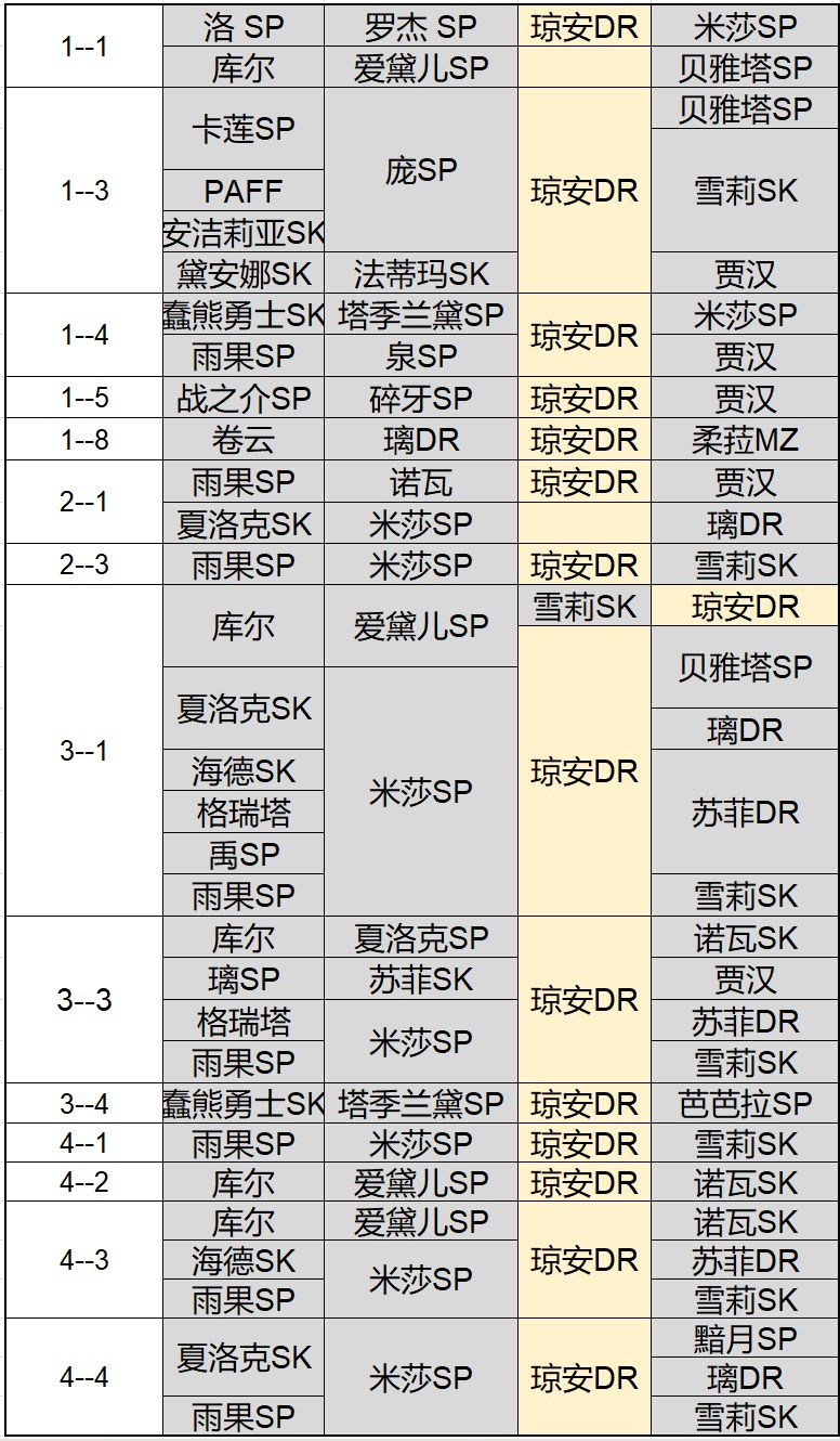 想着做都做了 那不如把DR都做了 给需要的人看看各个DR都能搭配什么幻境队伍吧
