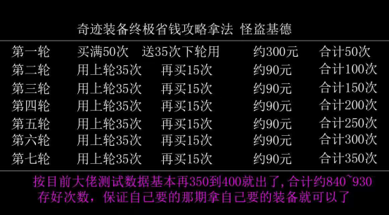 1) 7轮800-1000左右,可参考「奇迹注灵省钱攻略图」。