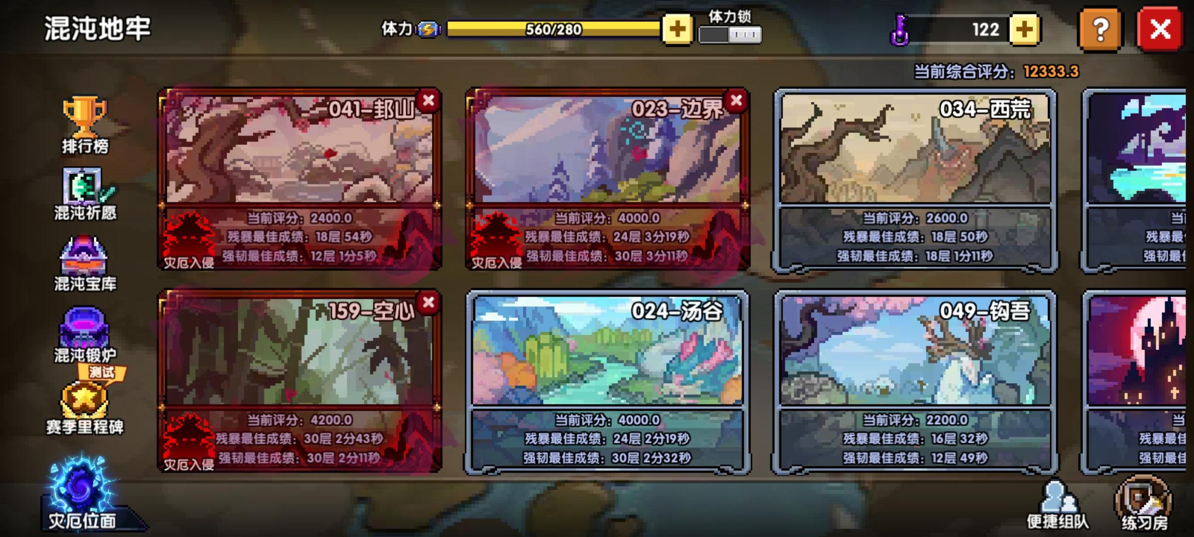 我还是建议前面打不过的,就自己准备一套觉醒等级高的。毕竟前期并没有那么多铭刻石,所以只能额外准备一套专门打混沌地牢的。要么就是被大佬带,他半分多打一个,你三分多打一个…