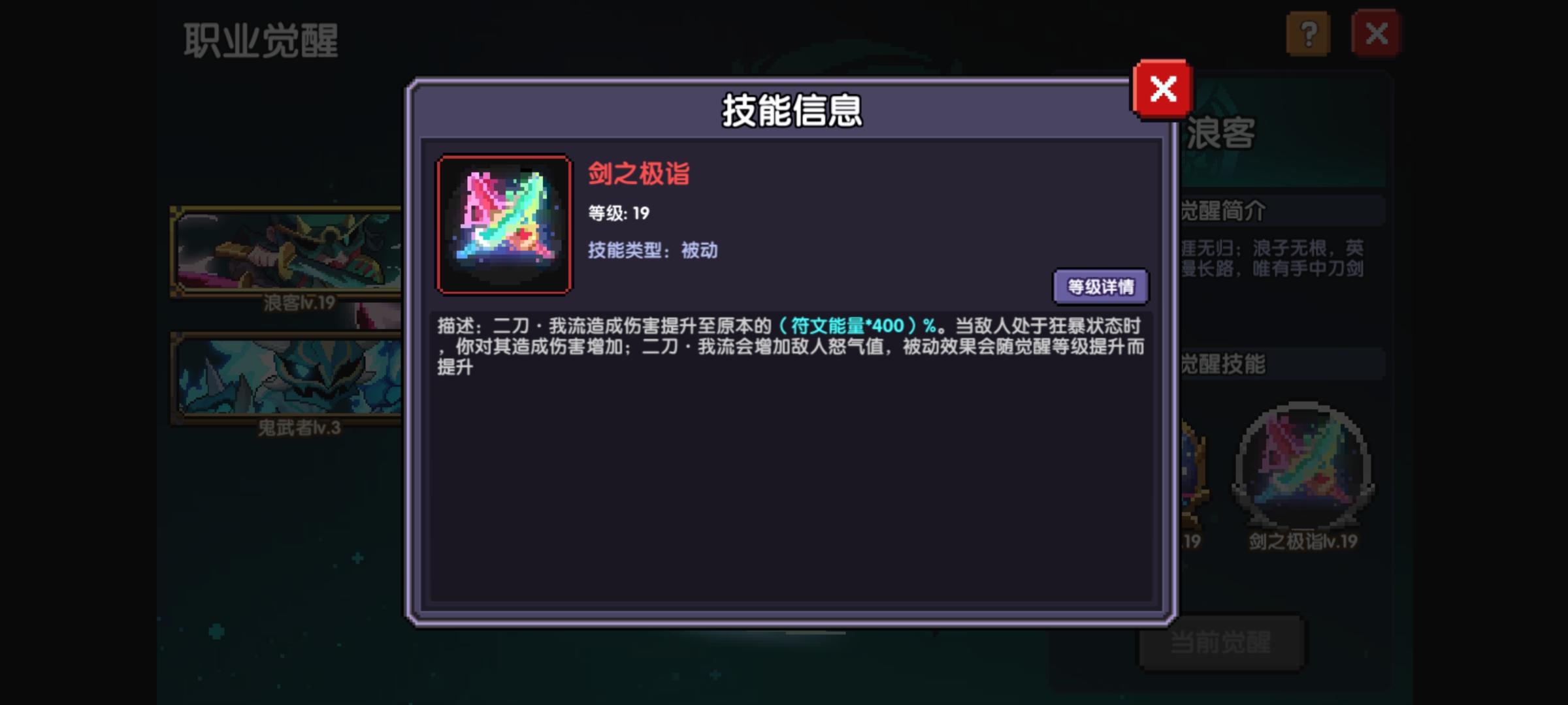 每个职业的觉醒技效果不同,根据他的效果和boss对应阶段释放对应的觉醒技会事半功倍,效果与数值倍率会随着等级的提升而提升。等级只会根据装备的【普通特性】的对应词条有关