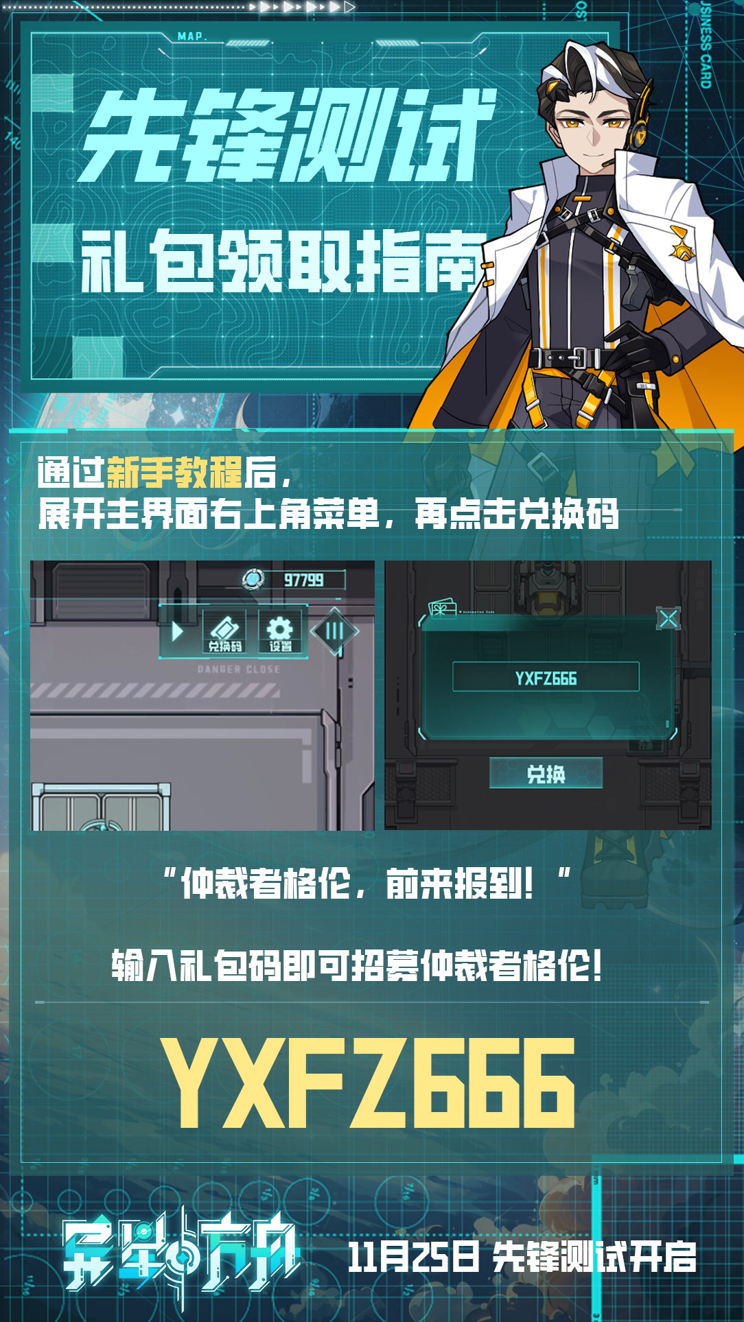 点击主界面右上角的展开按钮,进入界面,输入礼包码即可招募仲裁者格伦!