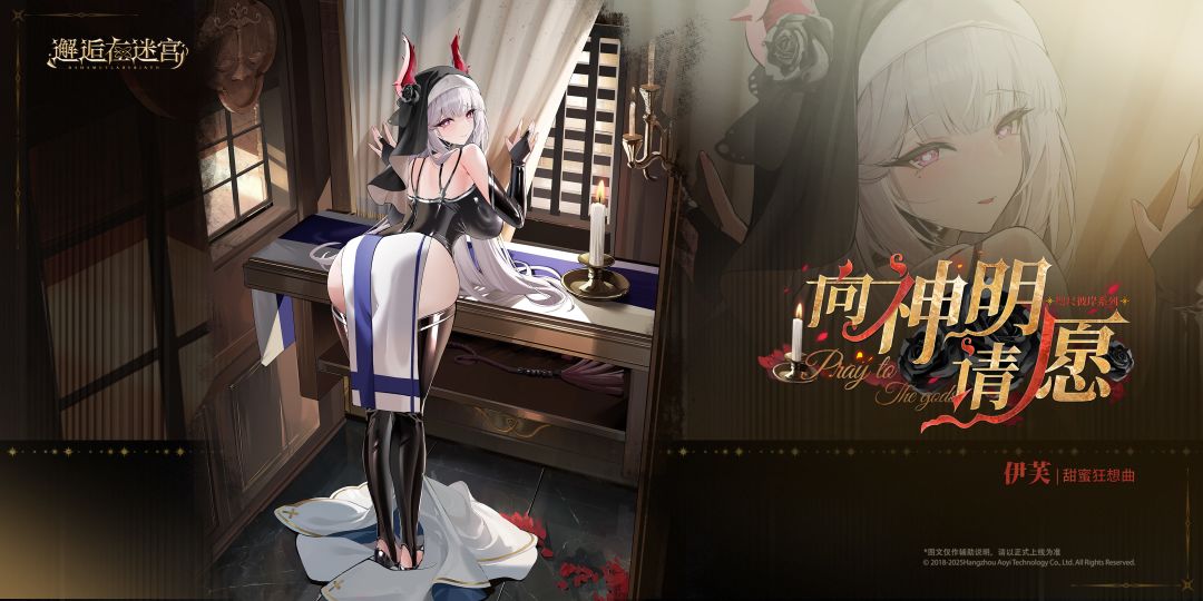 狭窄的圣堂内,微弱的烛焰轻轻跳动。她的长发垂落胸前,漆黑的修士服紧贴肌肤,透露出一股危险而美丽的气息。