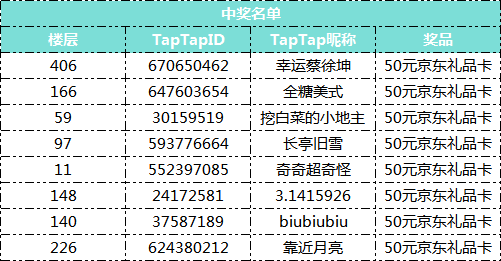 1、本次活动将会由TapTap自动开奖,请中奖玩家留意获奖信息,并在私信查看。