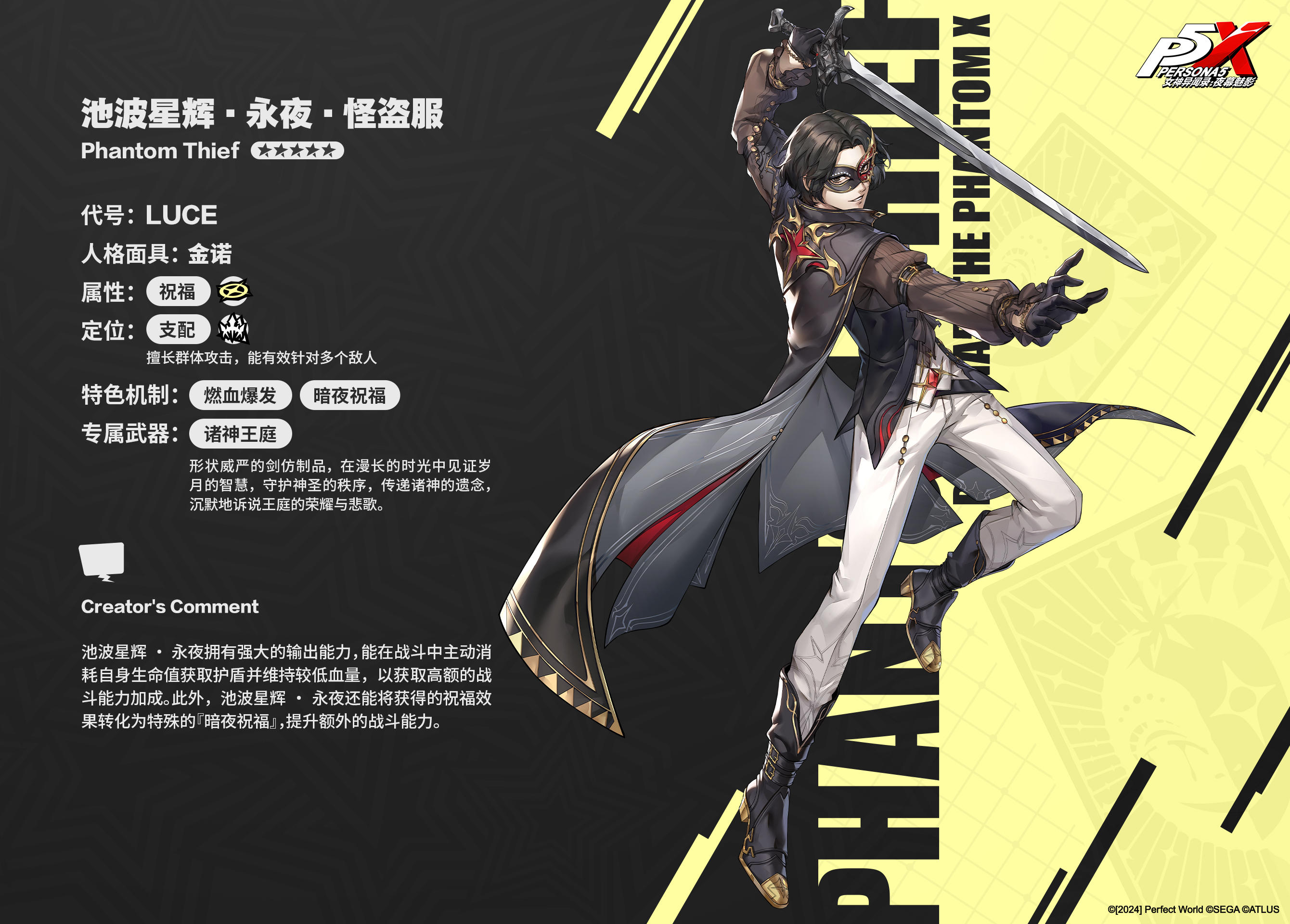 池波星辉·永夜拥有强大的输出能力,能在战斗中主动消耗自身生命值获取护盾并维持较低血量,以获取高额的战斗能力加成。此外,池波星辉·永夜还能将获得的祝福效果转化为特殊的『暗夜祝福』,提升额外的战斗能力。