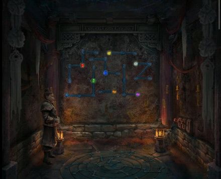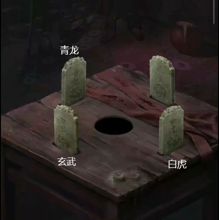 8、蜡烛在烧火阁点火,和陶瓷勺一起放在走廊左边的桌上,分别点击粉末查看颜色为“黄紫绿红橙”,打开墓门处箱子获得【白虎玉牌】。