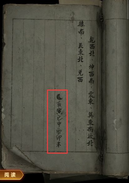 1、右边有一本《烟火戏》,记载烟花制作的内容,退回墓室外,地上有【铲刀】,桌上有【长柄瓷勺】和记载八卦的书,最后一页有【八卦纸张】,使用铲刀刮掉墙上的石板,看见天干地支的石块。