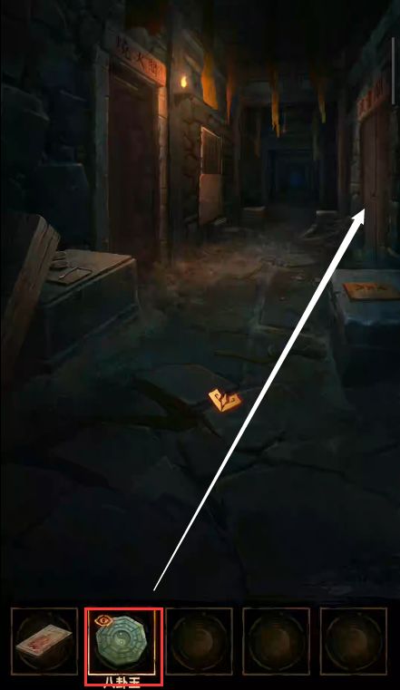 4、将八卦纸张放在内部墓室的石板上,把司南放上去,看到司南分别在艮坎坤乾离的卦象上停留,以此打开右边的密码箱,获得【青火烛】,用小刀划开箱子的藤蔓,获得【青龙玉牌】。小刀取下【竹子】。