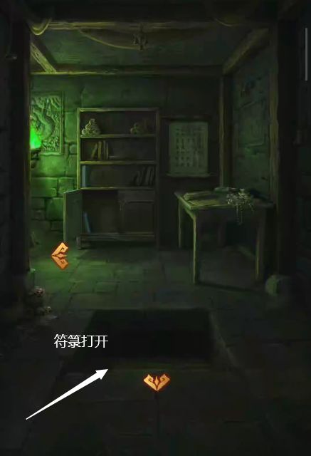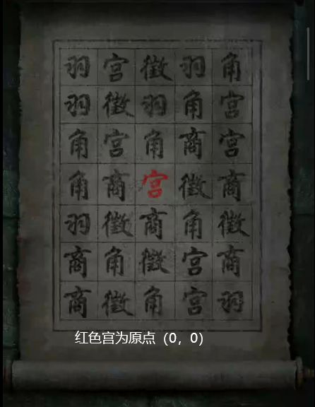5、根据日记加载的顺序调整墓室左边柜子上的物品,箱子打开,获得【古旧钥匙】,使用钥匙打开走廊的柜门,获得【香火】,还有一本书,第二页有坐标系,根据坐标系和墙上的字得出顺序为“宫羽商徵角宫商羽”,以这个顺序敲击编钟,获得【符箓】。