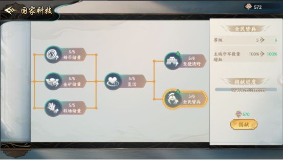 「征战四方」玩法即可开启,升科技需提交【国运珠】需要大家不断参与活动收集,齐心协力提升国家科技,升级各类增益效果。