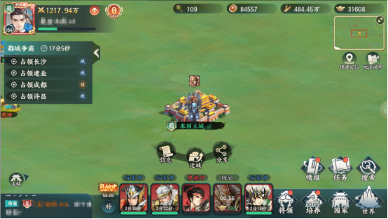 1.都城争霸占领奖励一(涉及城池:长沙、建业、成都、许昌)