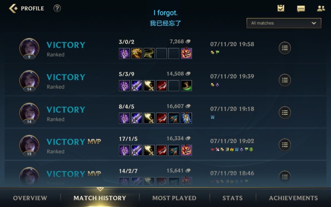 至于缺点。。。大概就是不能完全发挥卡莎的实力吧,毕竟双修英雄,再就是前期一定要压住对面AD,毕竟这套出装打的就是前期,后期卡莎的实力就不及其他AD了,就算换装备也难,人后期烬老远崩你一枪半血真的受不住 ,你看我每局的时间都是20分钟以内,拖久了容易崩。