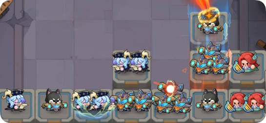 作为一个副C,主要是优先出大招,帮助前期清理飞行小兵,快速获取银币,购买出更多的英雄,快速合成2星钢铁汪。中期,还可以帮助组合聚怪拉怪,是一个非常称职的小帮手。