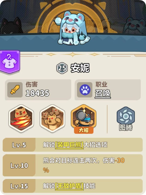 熊大的数量与厚实的血量,是团队最坚实的后盾。进可攻,退可守。