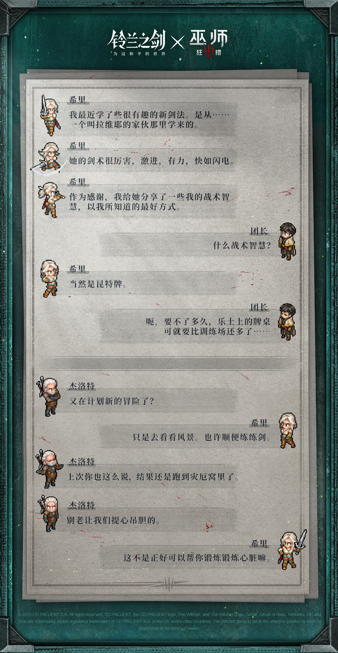 希里雅·菲欧娜·伊伦·雷安伦,多数时候被称作希里。她是杰洛特和叶奈法的养女,同时也是流亡的辛特拉公主,尼弗迦德皇帝恩希尔的女儿。
