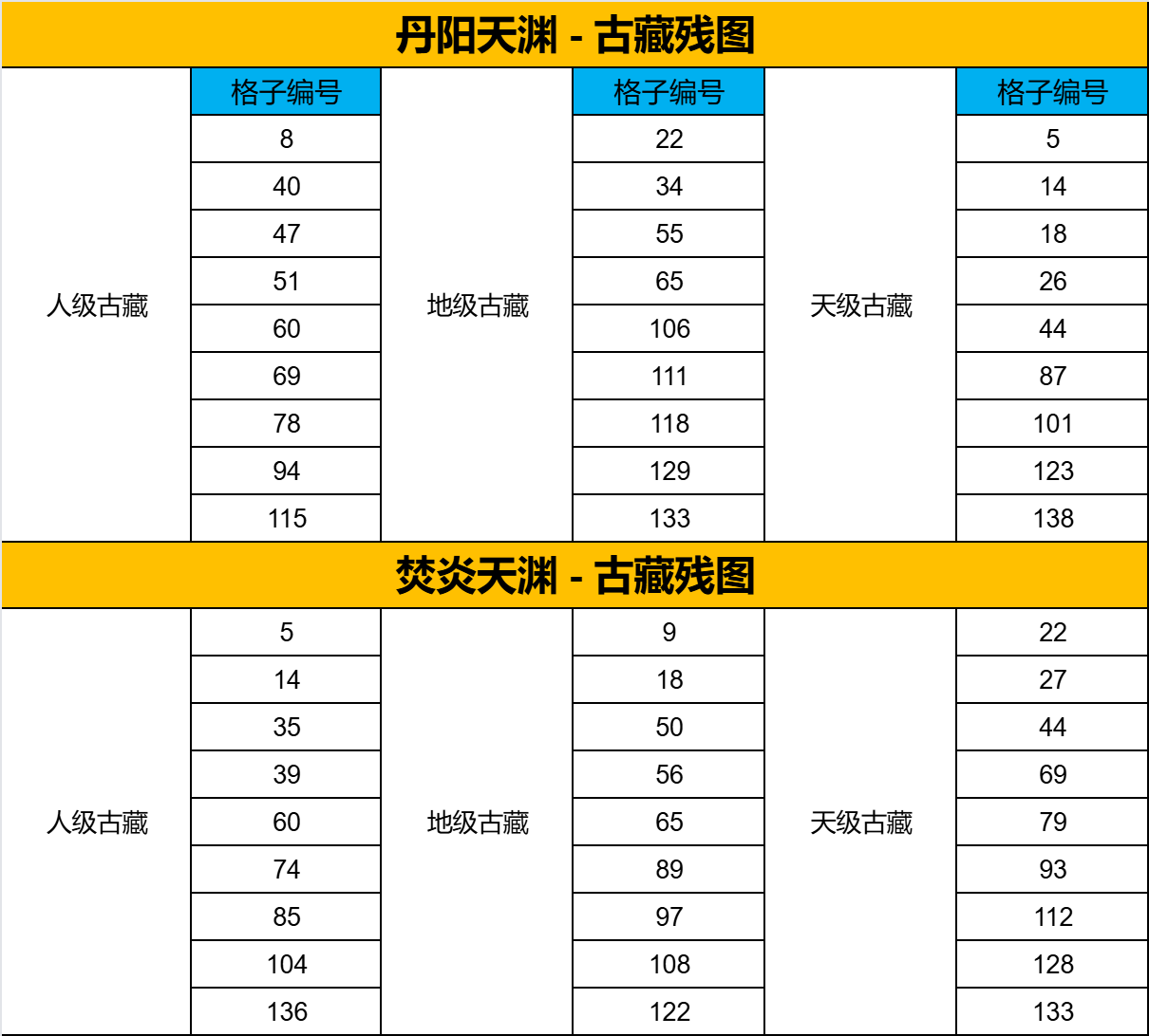 天渊特殊格子位置确认(更新:焚炎天渊古藏毕业)
