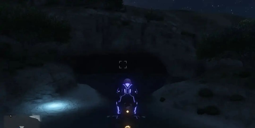 这个点位是在地图的右边,靠近矿场,截的图可能看不太清,早上来的话比较清楚,可以开船进去,是一个比较浅的山洞,是摩托帮任务的送货点之一,跟朋友一起来玩玩还是不错的约西亚山
