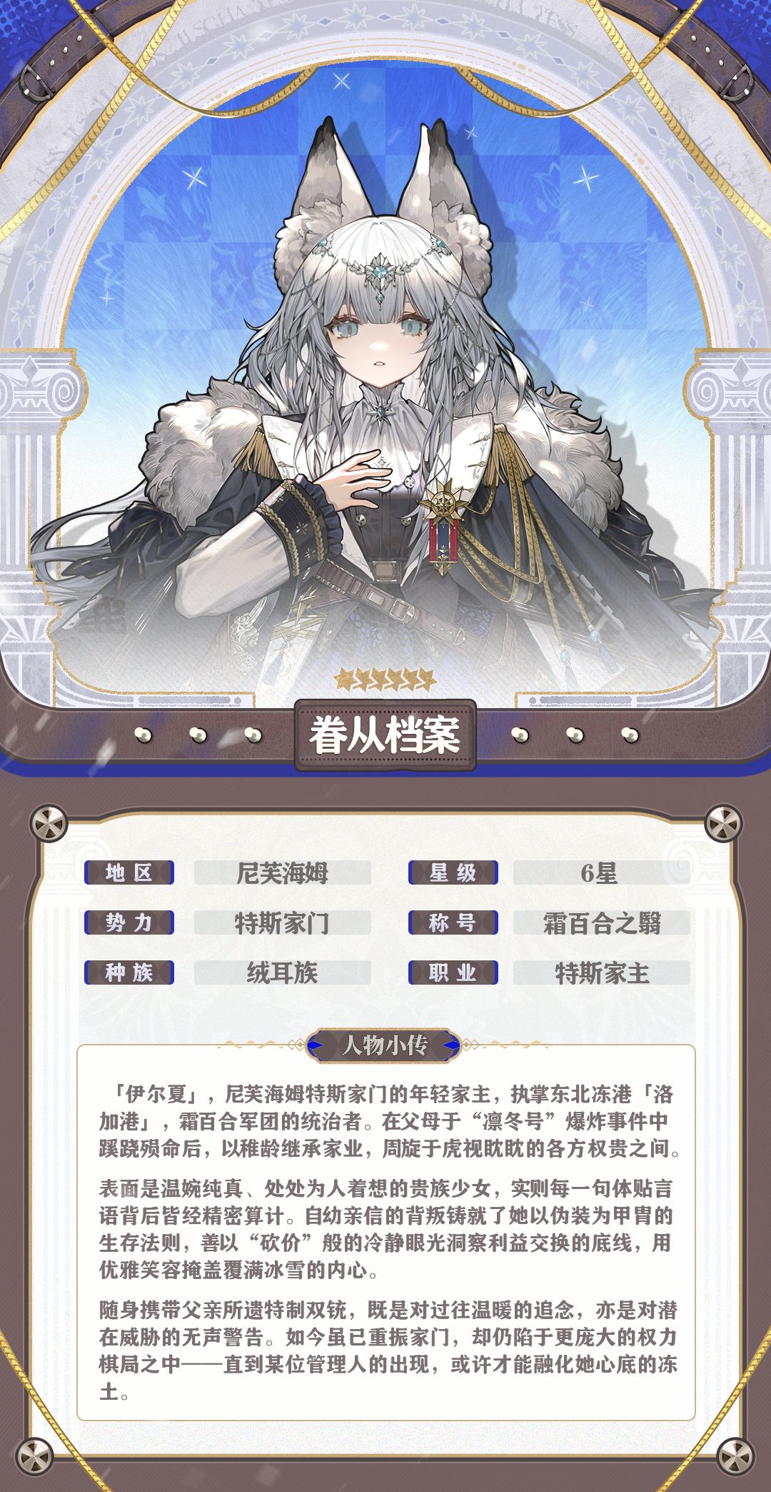 “以霜百合之名,伊尔夏·特斯,向您致以问候。管理人,愿我们共同度过的今日,皆能化为明日希望的晨露。”