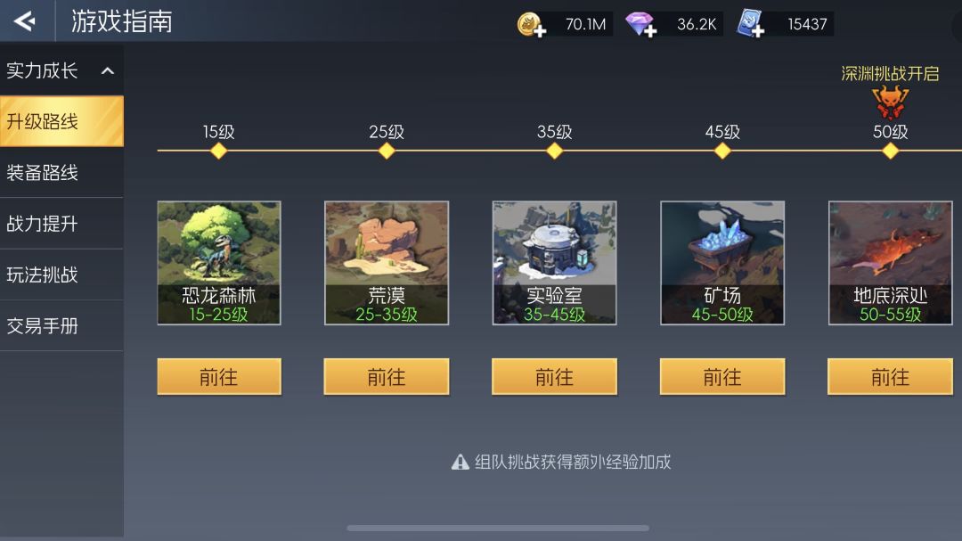 “秘密宝藏”掉落大量金币,“材料秘境”掉落大量强化纤维,“深渊锻炼”掉落大量深渊邀请函,“杰克的车库”掉落装备锻造精华,“狩猎盗贼”掉落部分可交易材料。通关后会直接开启扫荡模式,更迅速地获取材料。