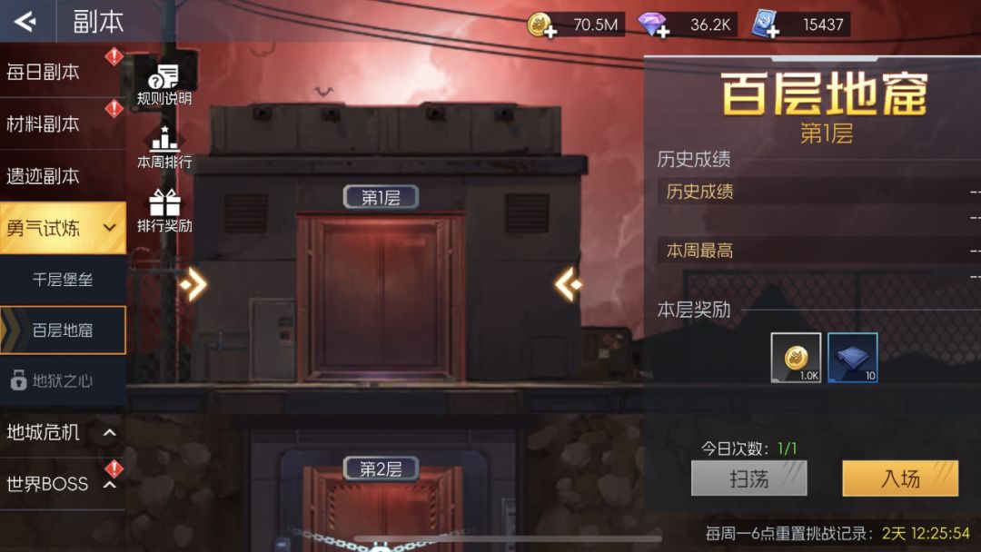 勇气试炼中,目前开放“千层堡垒”和“百层堡垒”两个模式。