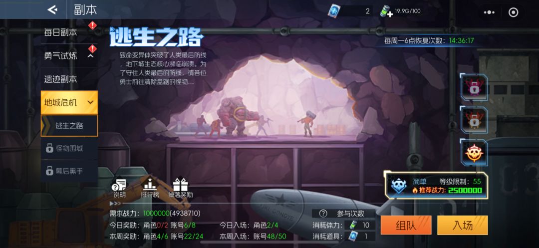 目前开启“逃生之路”副本,为随机增益加成的肉鸽玩法。在“逃生之路”副本中,开局和每层成功通关都能获得随机的增益BUFF,累计选择同种增益BUFF可以提升BUFF等级,获得更加强力的加成,助力探索通关。