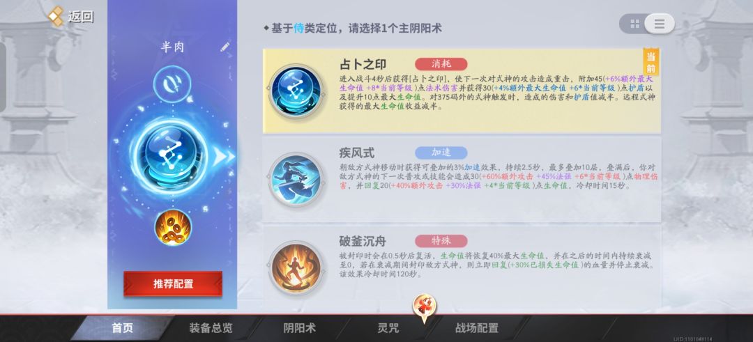 相当重装战士,出装上会比较追求生命值,这也是为什么阴阳术带占卜的原因。