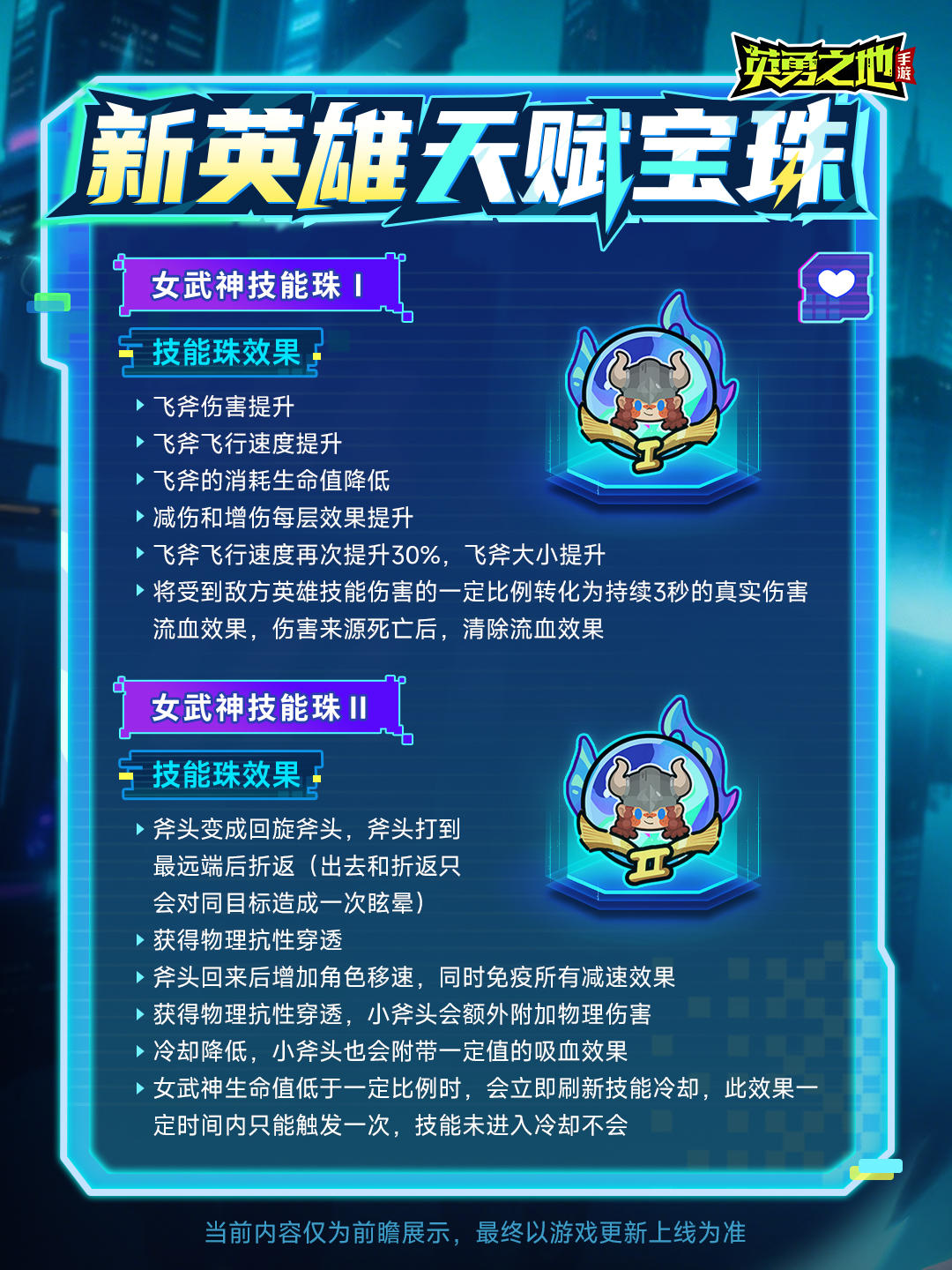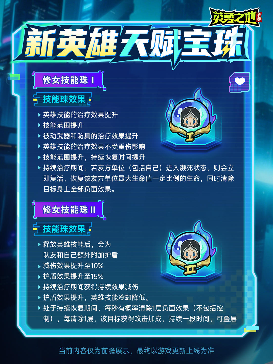 女武神、修女技能珠即将上线,版本更新后勇士们可在活动中免费领取1个新天赋自选礼包,自行选择新天赋赠礼~