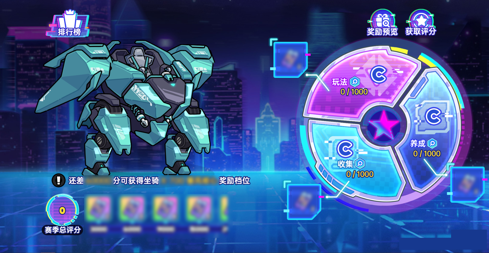 赛季评分系统即将上线,达成相应各板块评级和赛季总评分均可获得奖励!机甲坐骑、大量稀有道具奖励等你领取~