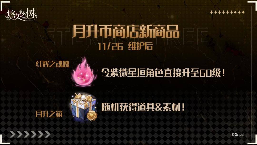 11月26日 维护后,全新道具红辉之魂魄、月升之箱即将上架月升币商店!