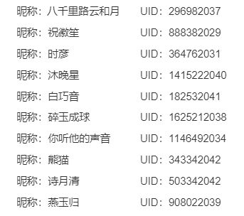 我们在苏遇荼本相活动卡池结束前所有抽到苏遇荼本相的艺人中,随机抽取了10名艺人,为大家送出【苏遇荼杀青纪念立牌】一份,以下为中奖艺人的游戏昵称与UID: