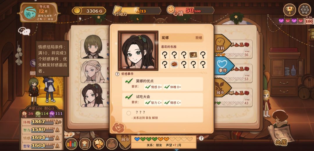 3:像铁匠,玛丽等人的三个要求是上课过程中强制执行的,所以说小宝们要注意好他们的好感度哦!别到时候女儿被猪拱了。