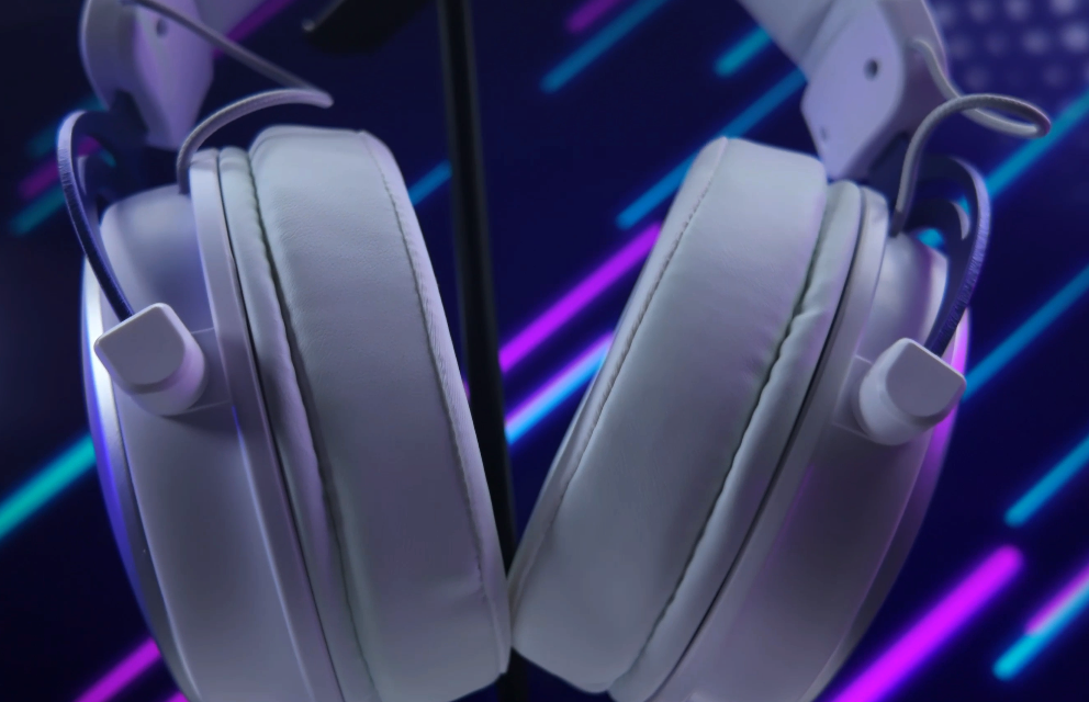 初见 VSG耳机,它的外观设计就打破了我对电竞耳机 “笨重花哨” 的刻板印象。金属材质的头梁搭配柔软的记忆海绵垫,摸上去质感十足,而暗影黑的配色低调中透着科技感,完全戳中了我对简约电竞外设的喜好。最让我惊喜的是它的佩戴体验,作为一名戴眼镜的玩家,此前用过的耳机总会把镜腿死死压在耳后,半小时就疼得太阳穴发紧,而 VSG耳机耳机 的 8 度斜角耳罩设计,让镜腿能轻松嵌入耳罩与头梁的间隙,彻底摆脱了挤压的痛感。95mm 的大耳罩将我的耳廓完整包裹,蛋白皮材质亲肤透气,内部的慢回弹记忆棉像云朵般柔软,即便是连续 7 小时鏖战《英雄联盟》总决赛,摘下耳机后耳周也没有丝毫闷热感,更没有留下粘腻的印记。276 克的轻量化机身,也让我告别了通宵开黑后脖子酸痛的困扰。