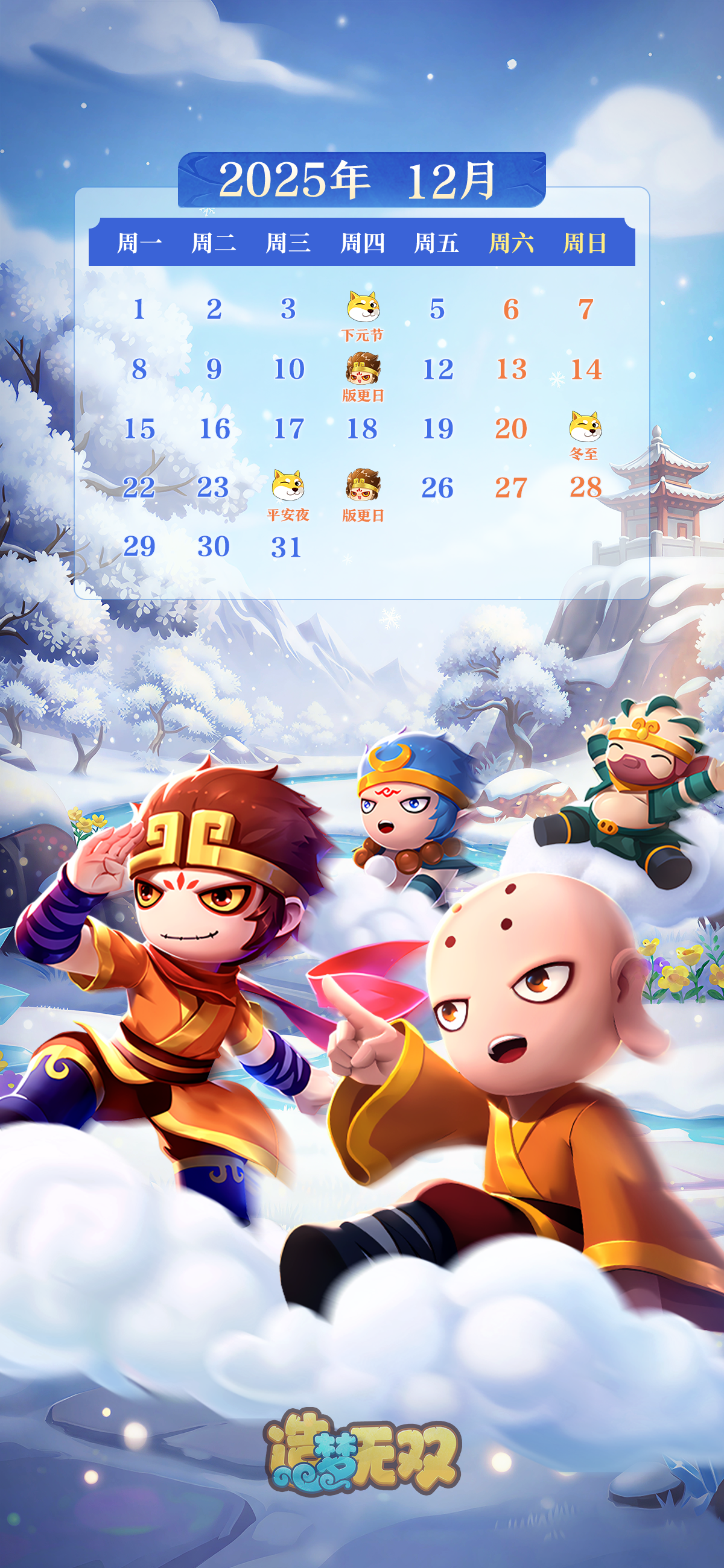雪落枝梢,云裹琼楼,空空邀你堆雪人啦~赶紧将这份迎接初雪的限定美好设成壁纸,让空空、师徒们陪你开启十二月的冬日篇章吧!长按保存下方图片即可前往图库设置壁纸!