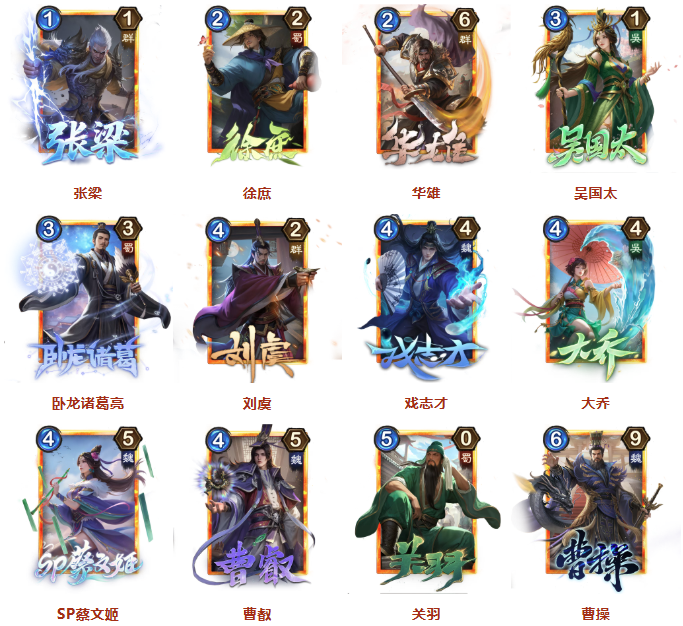 技能:明鉴登场,你手牌中锁定技武将的粮草消耗-1,战力+1(粮草消耗最低为1)