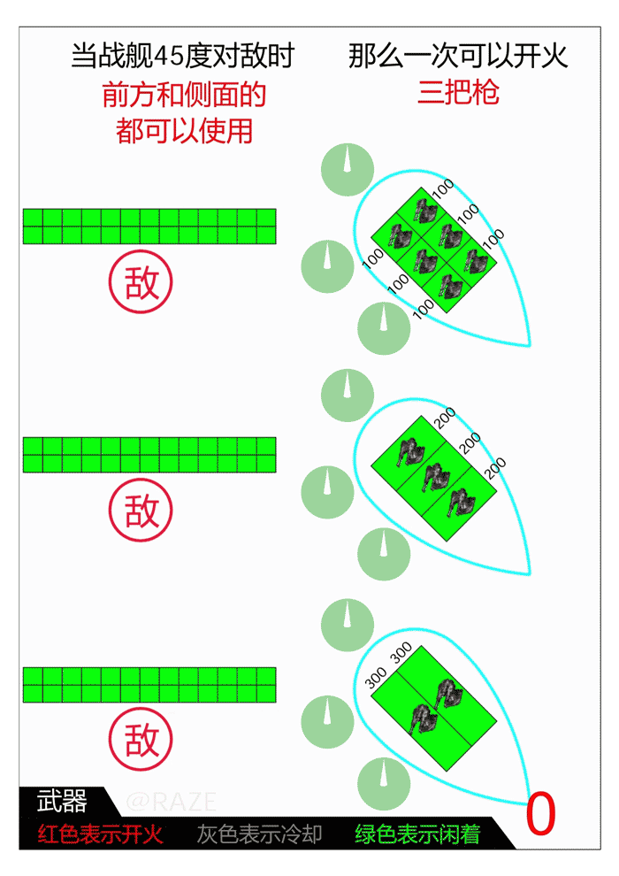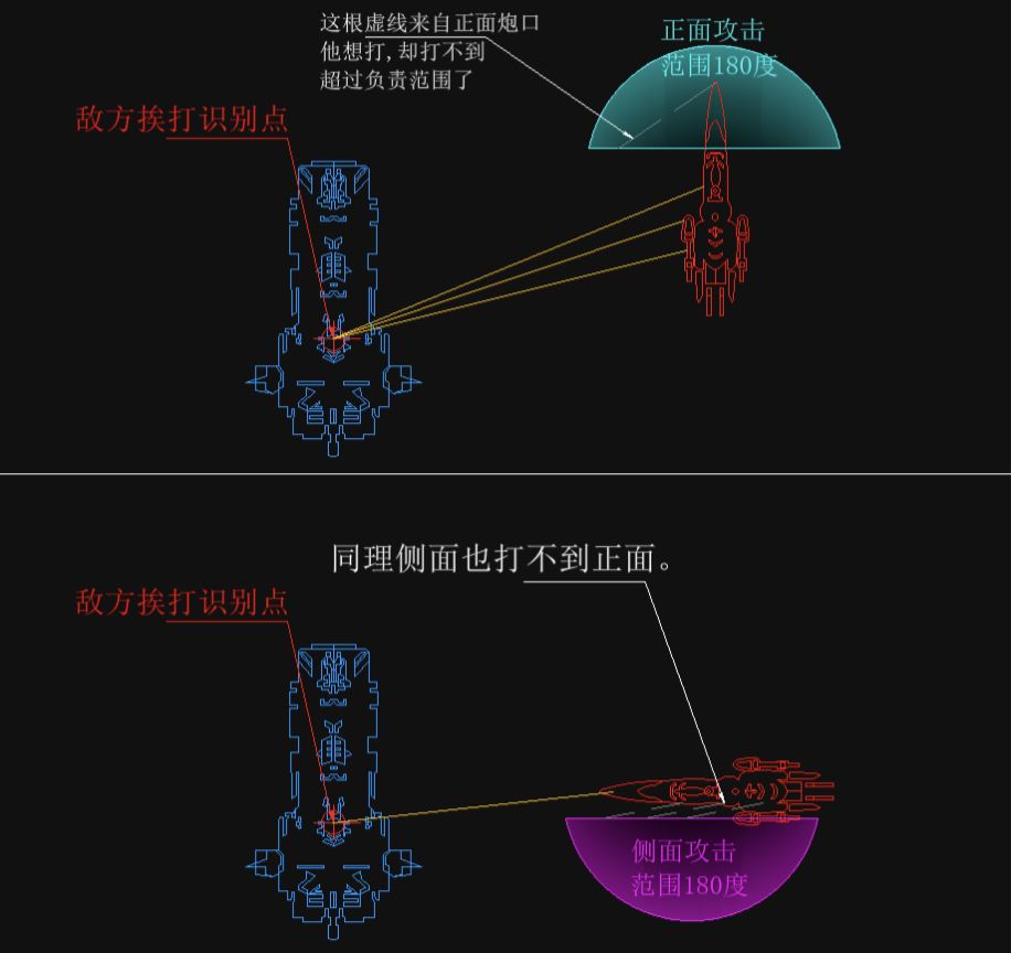 战舰只有前,左,右,有炮口。没法向后开火,所以逃跑时尽量沿z字形移动。