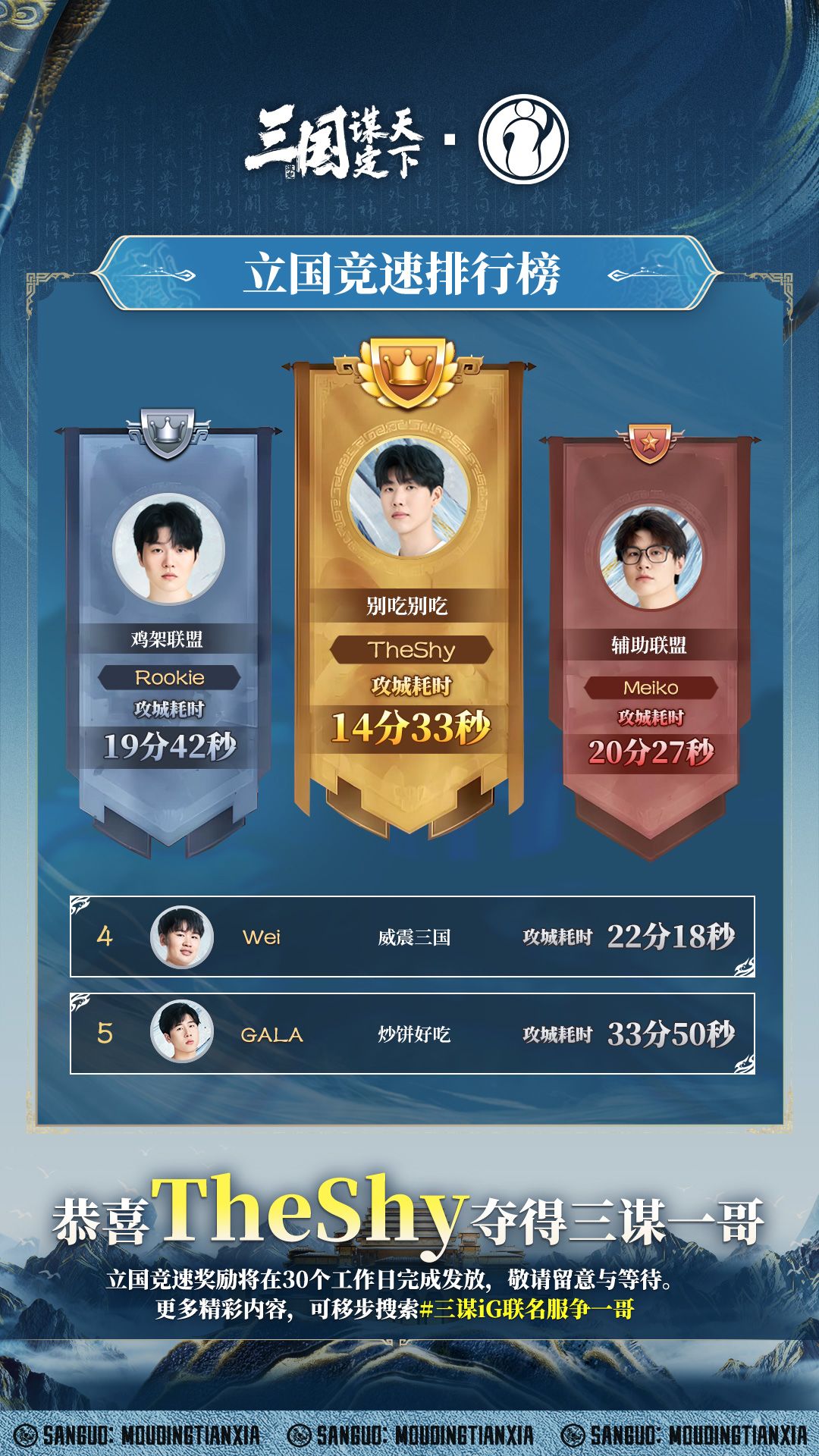 恭喜TheShy获得立国竞速第一名丨iG联名服立国竞速战报来袭!