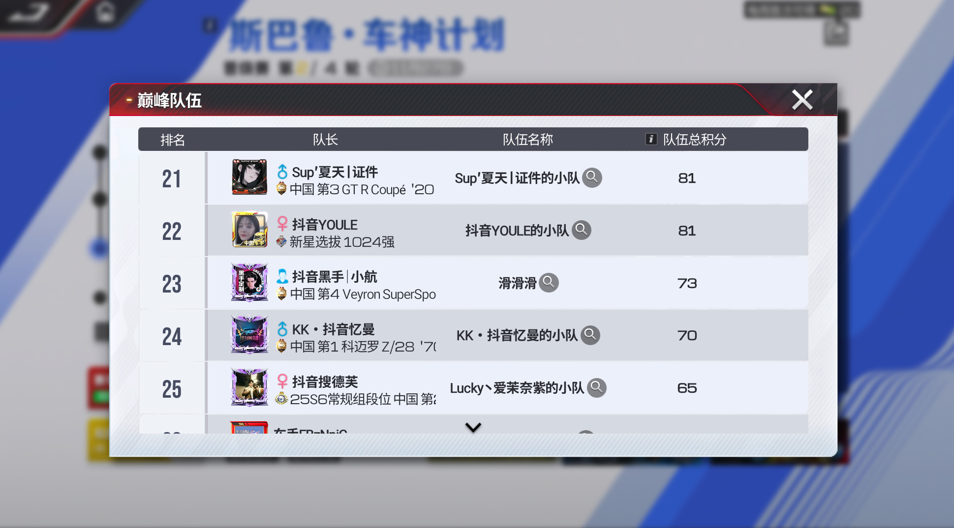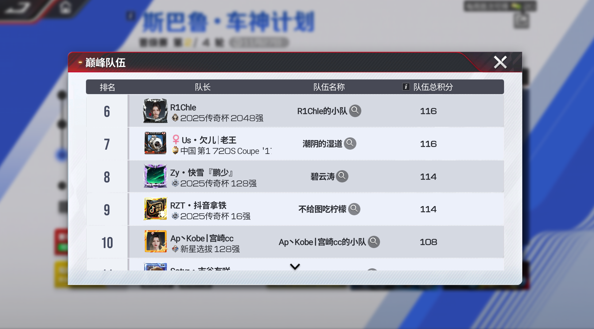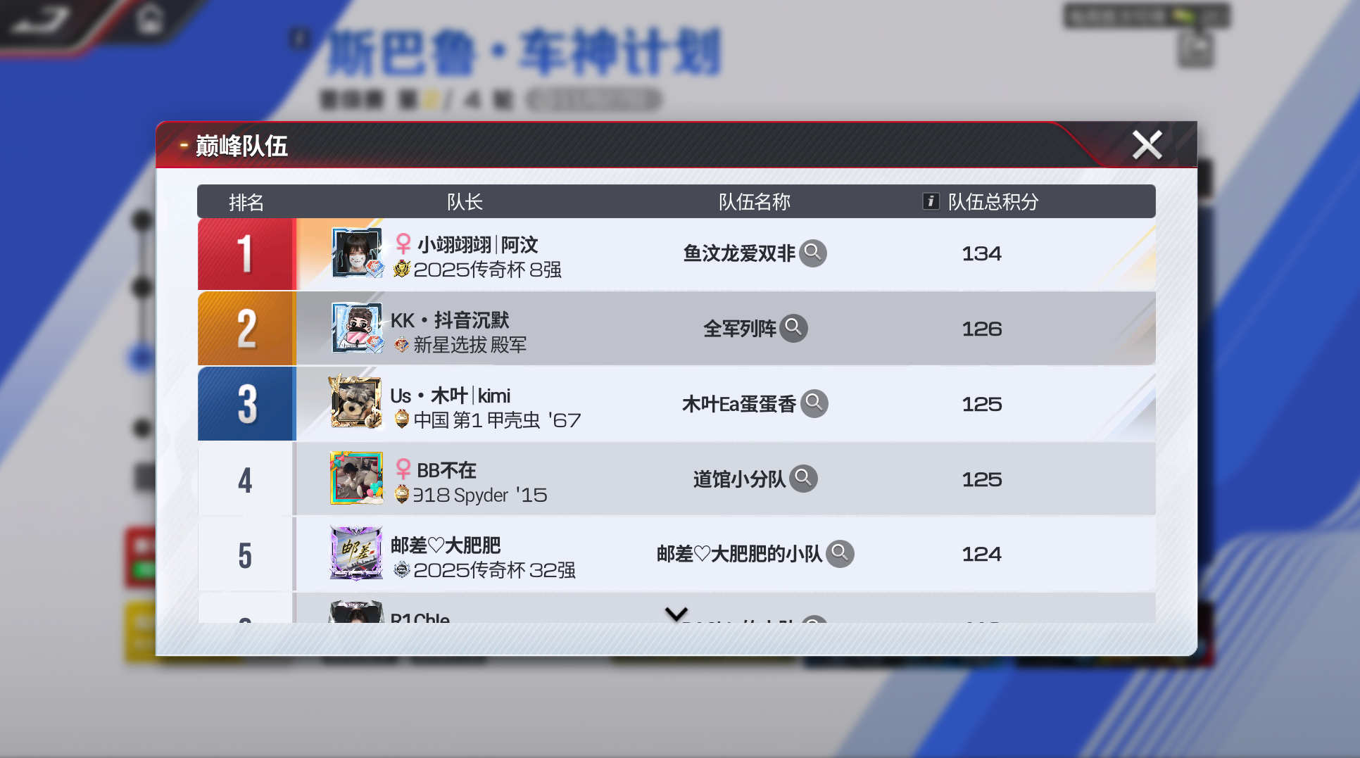截至晋级阶段第一轮结束,车神小队总积分排名如下👇