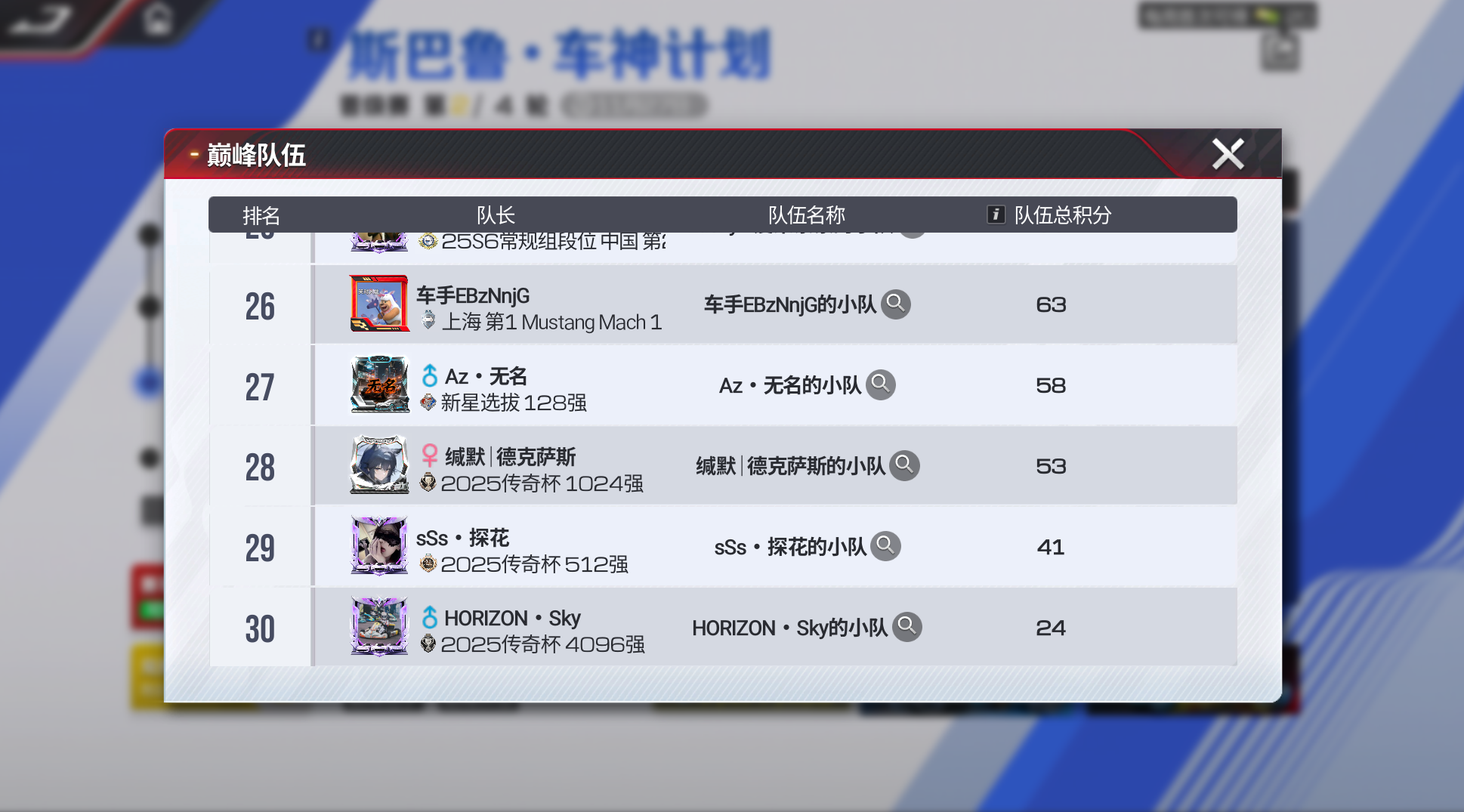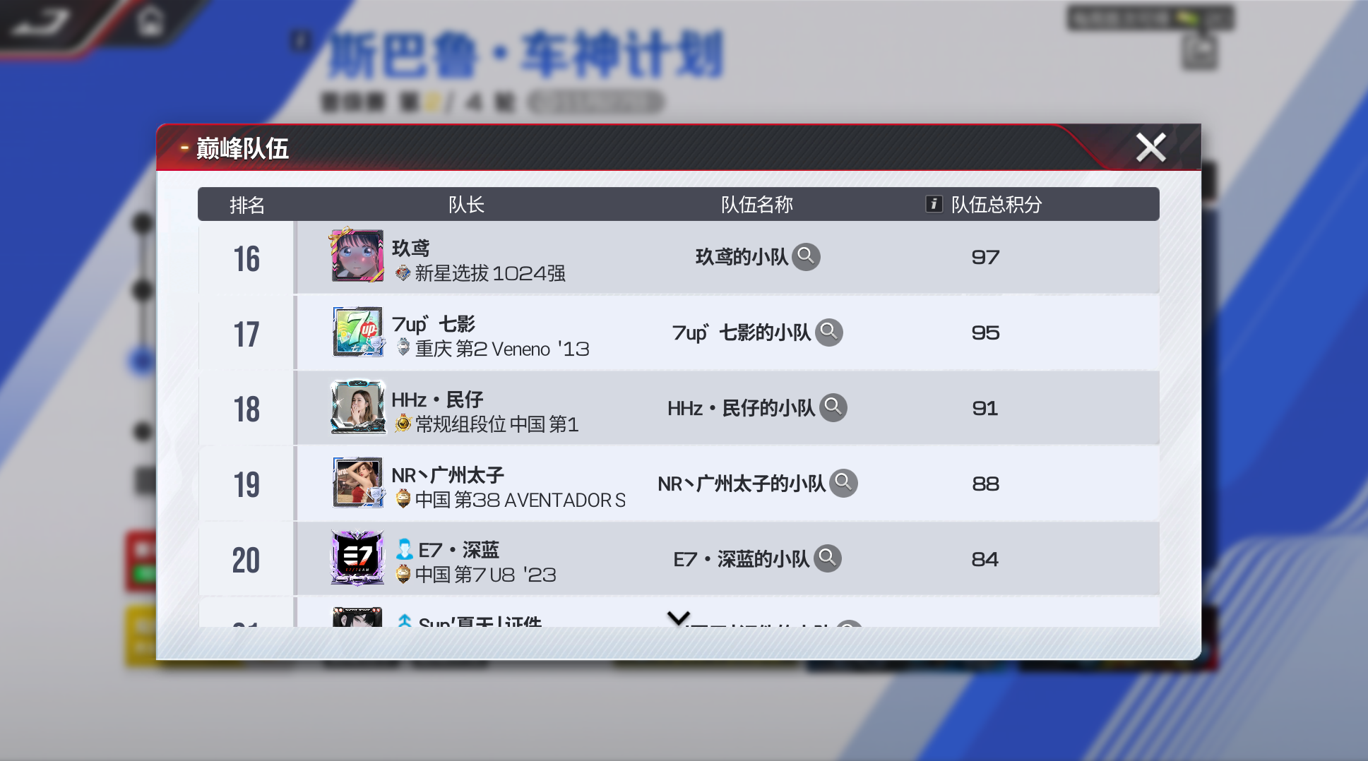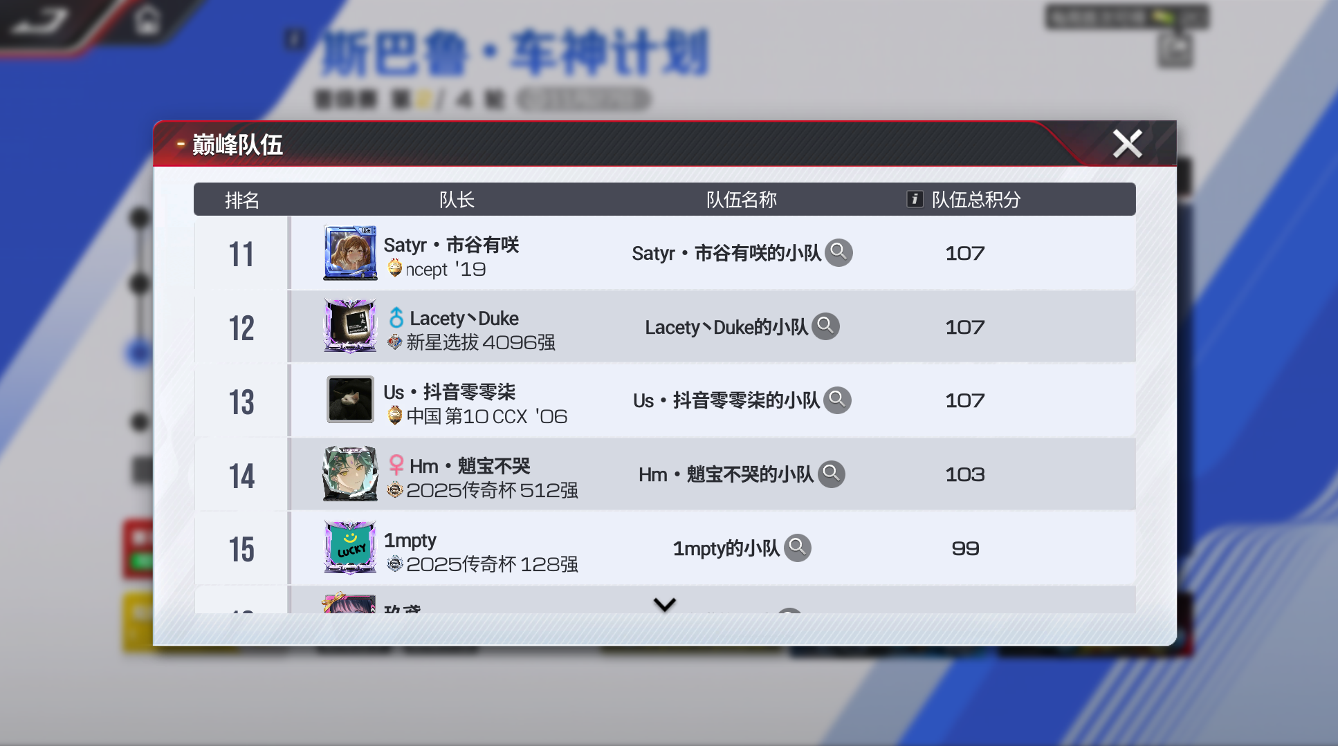 截至晋级阶段第一轮结束,车神小队总积分排名如下👇