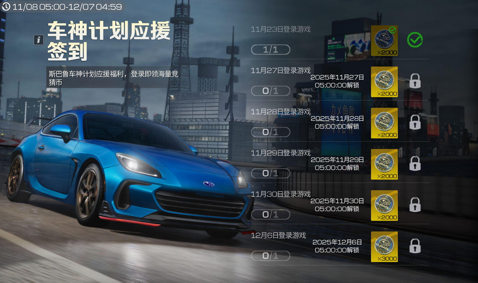 更有竞猜保险箱官方兜底,提供高达5W竞猜币的兜底额度,让你放手一搏,怎么猜都稳赚不亏!安心攒满竞猜币,斯巴鲁BRZ STI Sport '25轻松拿下!