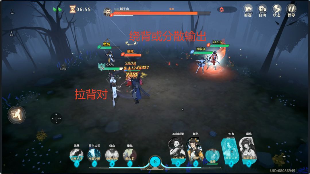 尽量让09站角落,稳好血线,然后boss被弱点击破后上debuff压血线,这个boss不难。