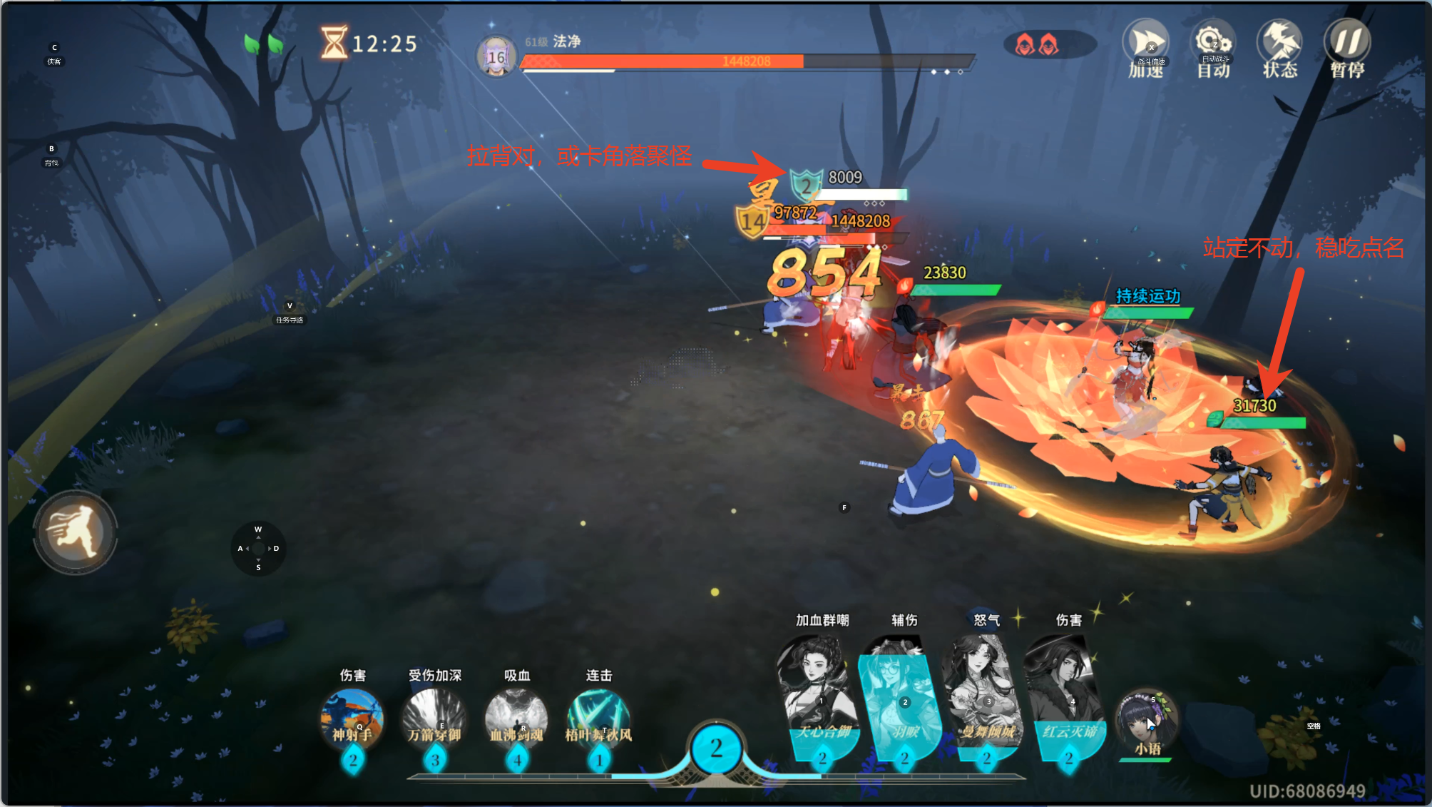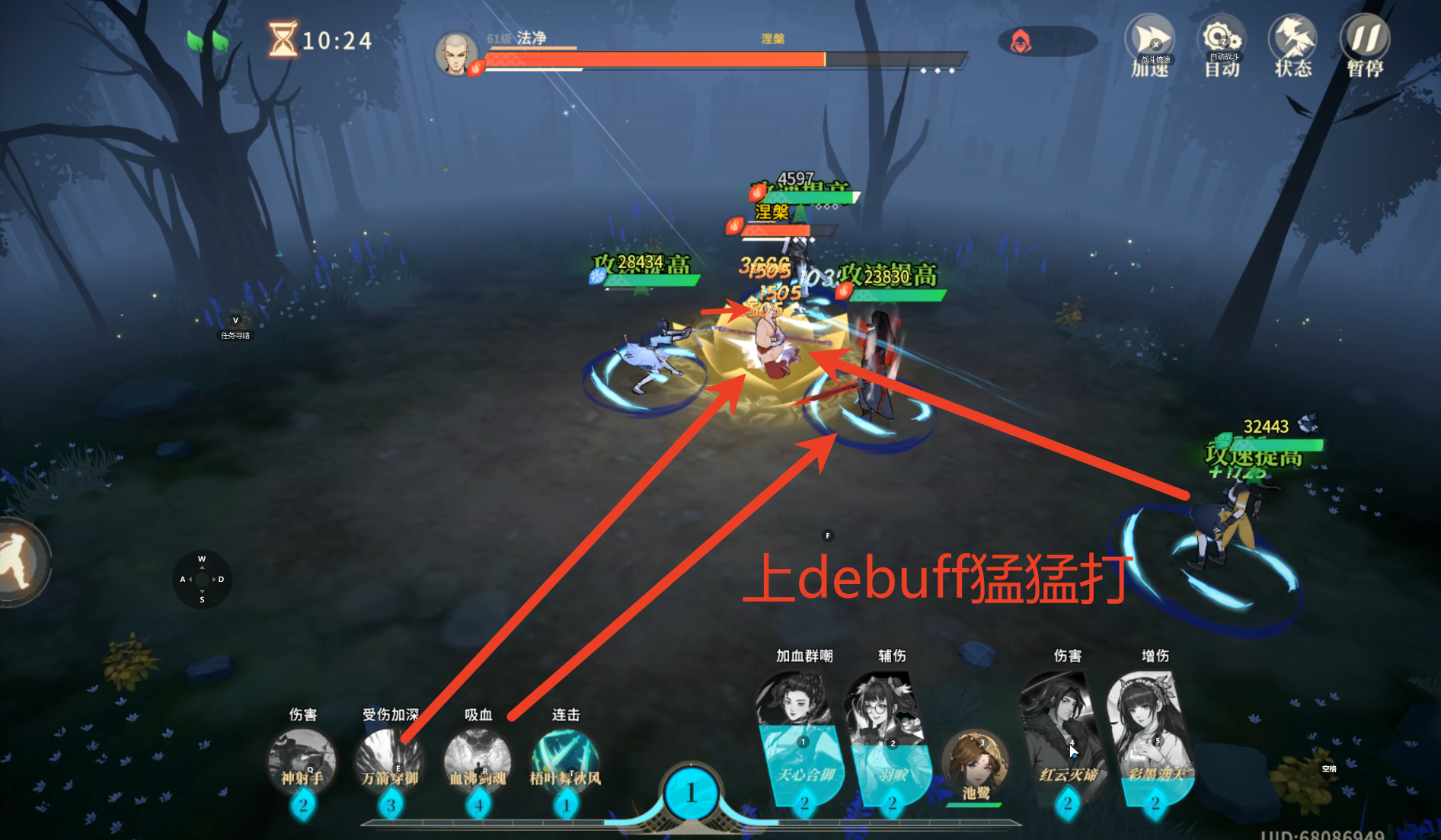 清完小怪后,直接万箭穿御+小语+09+血沸剑魂压BOSS血量就行。输出不够的话战前吃个输出小药。