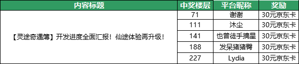 感谢各位仙友积极参与!让我们恭喜以下仙友获得本次活动奖励!结果公示如下: